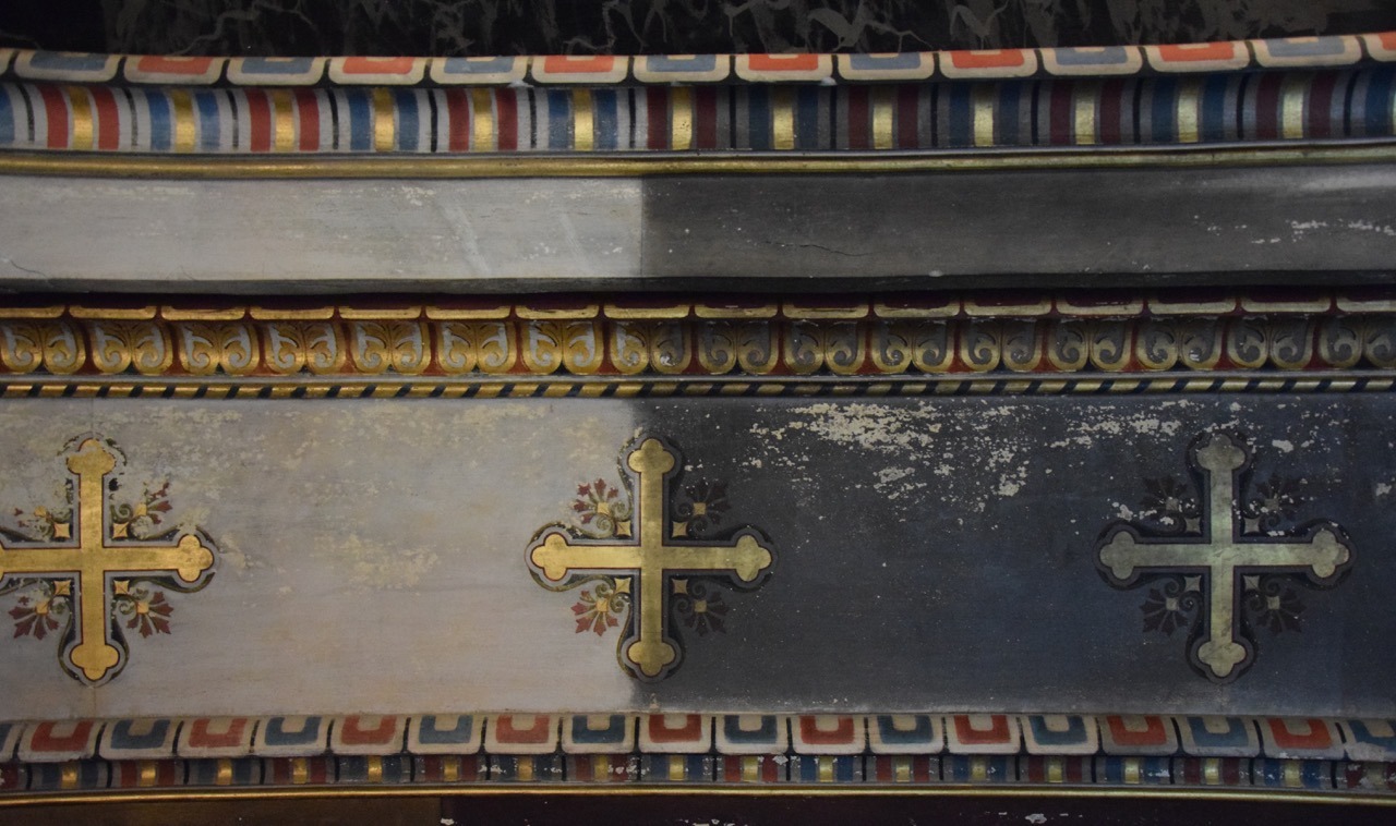 Ο εξωτερικός χρωματισμός, από τον οποίο σήμερα σώζονται μόνο τοπικά ίχνη, με διαβαθμίσεις στις αποχρώσεις και απομίμηση φλεβώσεων μαρμάρου, αναδεικνύει ακόμα περισσότερο την επιμελή κατασκευή του ναού και την κομψότητά του.