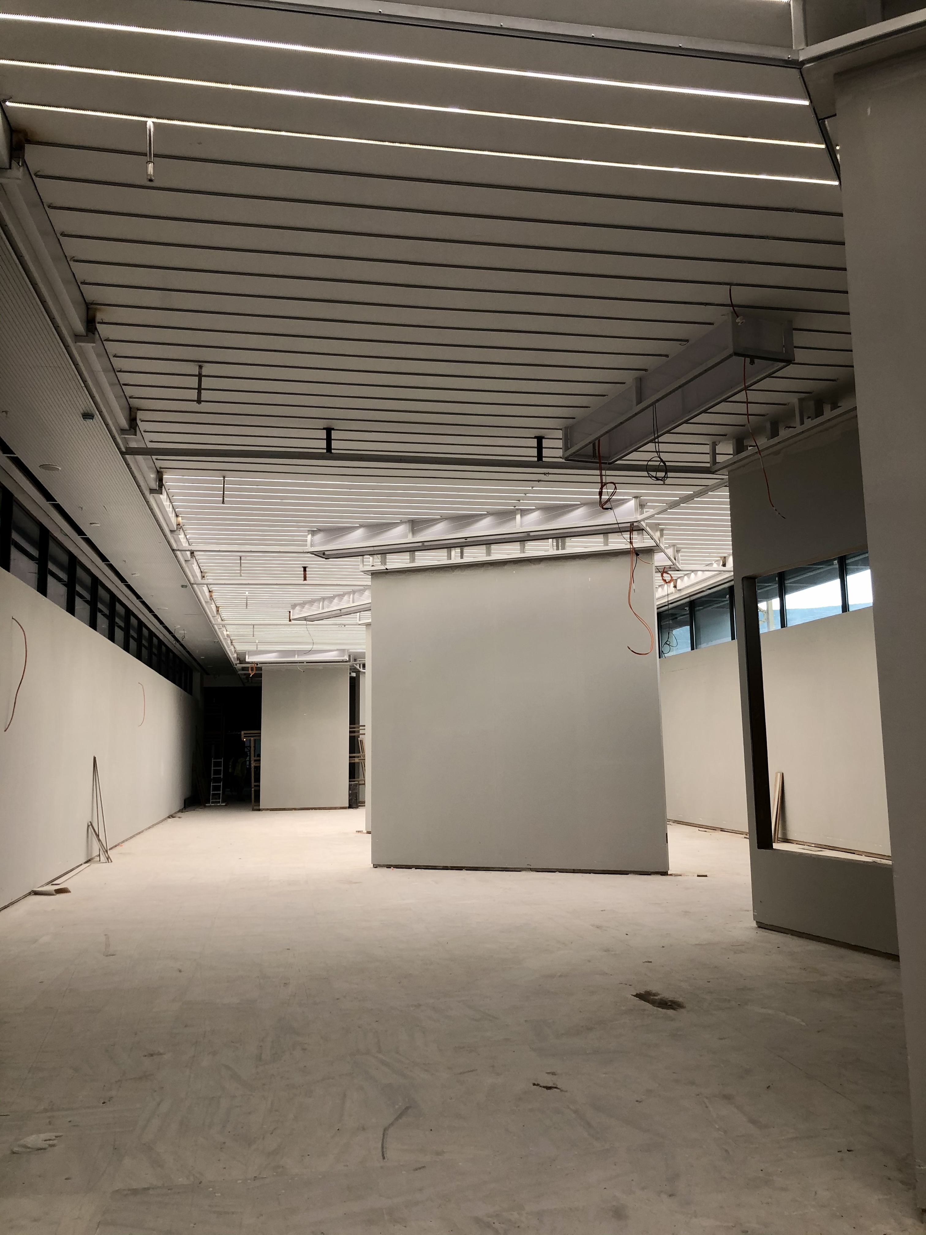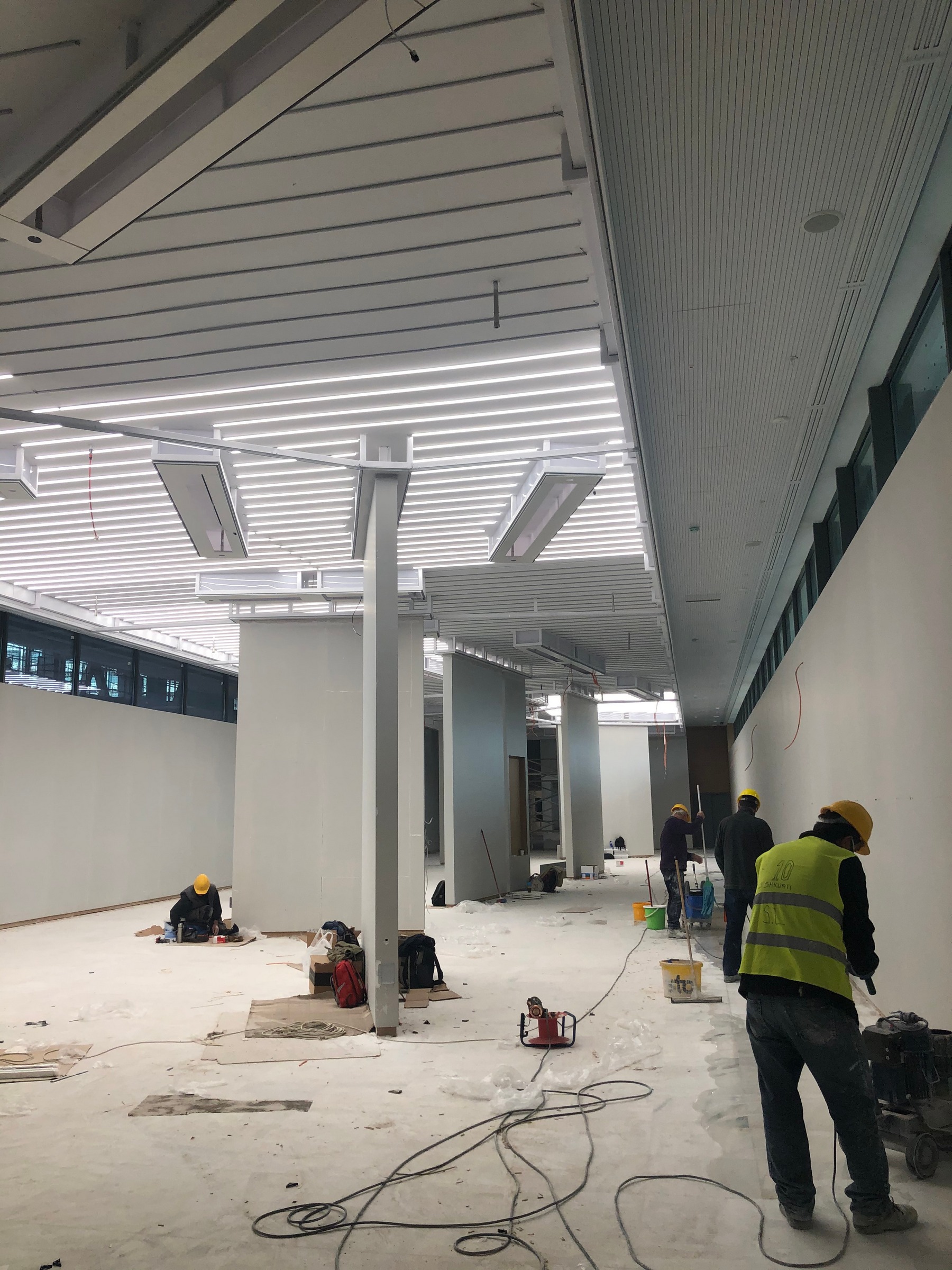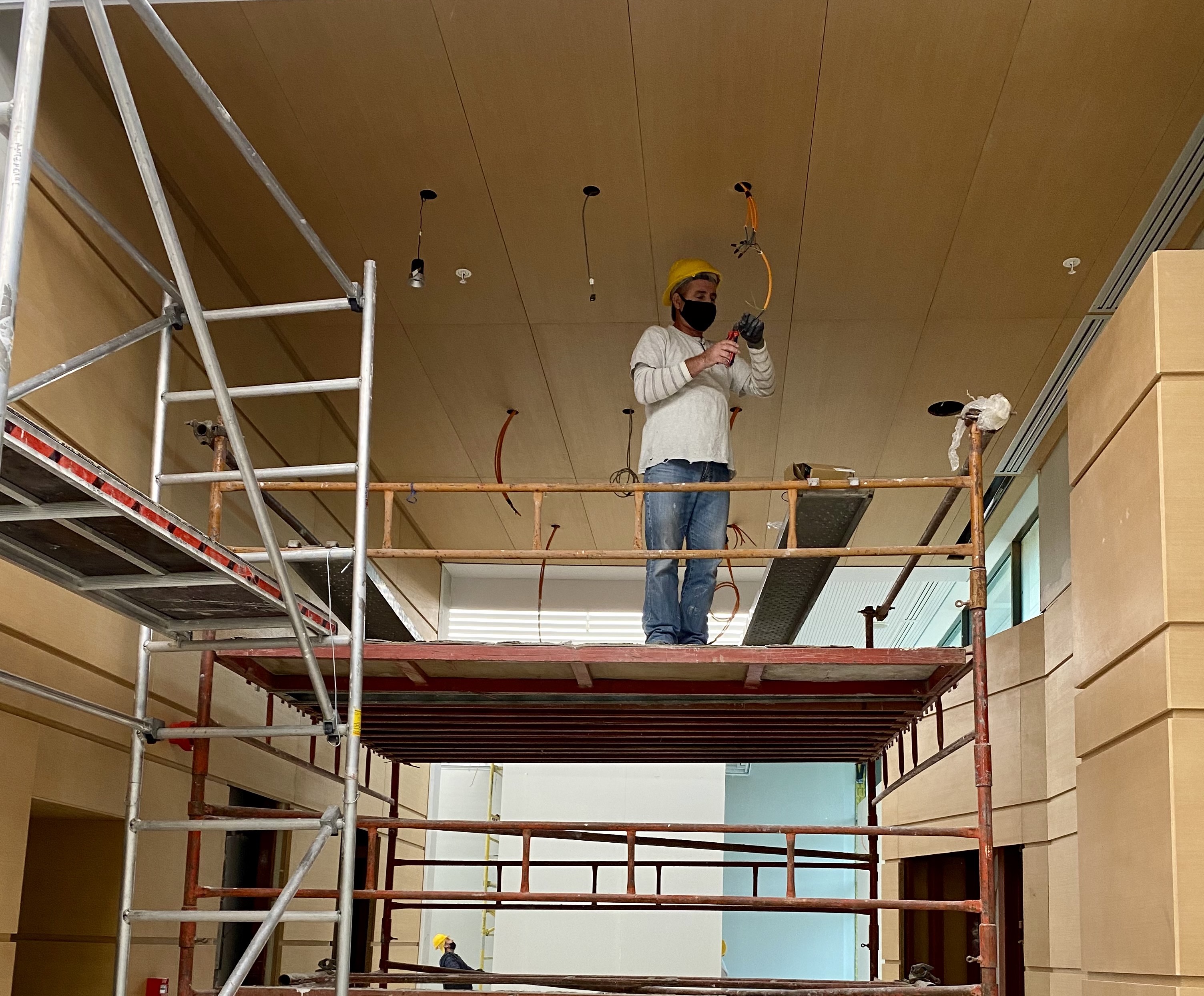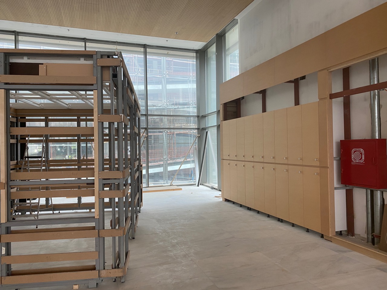 Ήδη έχει ολοκληρωθεί η τοποθέτηση των ξύλινων επενδύσεων και κατασκευών. Έχουν τοποθετηθεί τα ξύλινα δάπεδα. Ολοκληρώνονται οι ψευδοροφές και ταυτόχρονα ο φωτισμός. Στο foyer κατασκευάζεται το βεστιάριο, ενώ τις επόμενες εβδομάδες εγκαθίσταται και ο ψηφιακός εξοπλισμός.