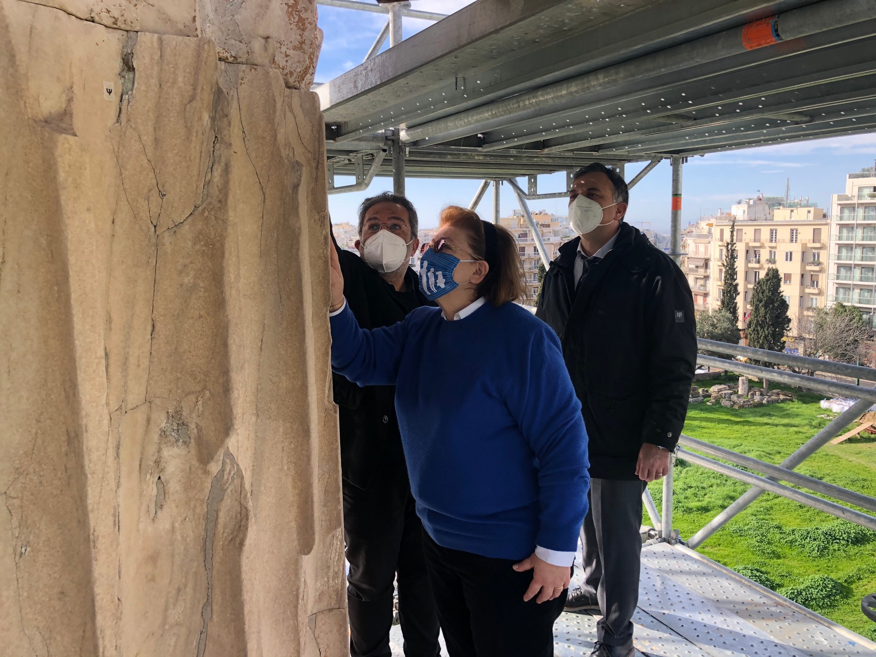 Αυτοψία στο έργο «στερέωσης και συντήρησης του Ναού του Ολυμπίου Διός» πραγματοποίησε η Υπουργός Πολιτισμού και Αθλητισμού Λίνα Μενδώνη. Η Υπουργός, συνοδευόμενη από τον Γενικό Γραμματέα Πολιτισμού Γιώργο Διδασκάλου και υπηρεσιακά στελέχη του ΥΠΠΟΑ, επιθεώρησε το πρόσφατα ολοκληρωμένο ικρίωμα ύψους 17 μέτρων, στον δυτικότερο κίονα του Ναού του Ολυμπίου Διός στην Αθήνα. Το ικρίωμα, κατασκευάστηκε στο πλαίσιο του προγράμματος στερέωσης και συντήρησης των ιστάμενων τμημάτων του μνημείου από την Εφορεία Αρχαιοτήτων Πόλης Αθηνών. Το ικρίωμα επιτρέπει να αποτυπωθεί, για πρώτη φορά από κοντά, η πραγματική κατάσταση ευστάθειας του κίονα ύψους 17μ., δίνοντας την δυνατότητα λεπτομερούς τεκμηρίωσης στο ζήτημα της δομικής παθολογίας του και της υλοποίησης του προγράμματος δομητικής στερέωσης και συντήρησής του.