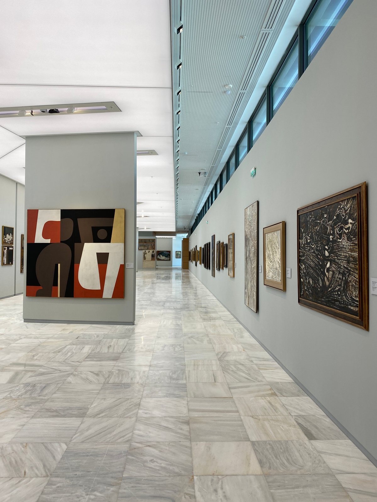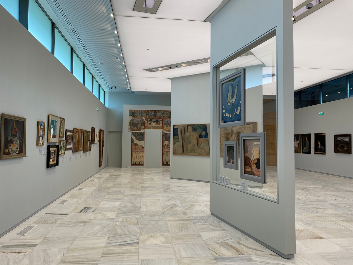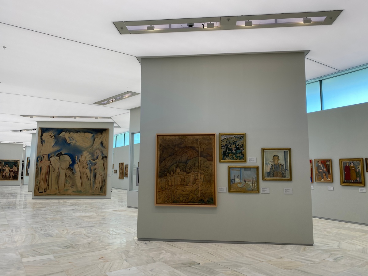 Τότε το κοινό θα έχει την ευκαιρία να δει την πλήρη έκθεση της μόνιμης συλλογής της Εθνικής Πινακοθήκης. Να επισκεφθεί τον πρώτο όροφο -που εικόνες της είδε στην τηλεόραση- αλλά και τον δεύτερο όροφο, στον οποίο παρουσιάζονται έργα της περιόδου του μεσοπολέμου. Με πρότυπο τα γαλλικά μεταϊμπρεσιονιστικά ρεύματα, ο Παρθένης, ο Μαλέας, ο Νικόλαος Λύτρας και λίγο αργότερα ο Παπαλουκάς, θα επιχειρήσουν και τελικά θα βρουν ένα χρωματικό ιδεόγραμμα του ελληνικού φωτός. Θα αναγνωρίσουν και τις επιρροές που δέχθηκαν οι πρώτοι Έλληνες μοντερνιστές, της Γενιάς του ΄30 (Παρθένης, Παπαλουκάς, Τσαρούχης, Μόραλης κ.ά), που συνδέονται με την εισαγωγή των πρωτοποριακών ρευμάτων στην Ελλάδα και τη συνειδητή προσπάθειά τους να τους αποδώσουν ελληνική ιθαγένεια.