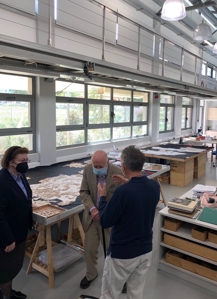 Τις νέες, σύγχρονες αρχαιολογικές αποθήκες της Αμερικανικής Σχολής Κλασικών Σπουδών στην Κόρινθο, επισκέφθηκε η Υπουργός Πολιτισμού και Αθλητισμού Λίνα Μενδώνη, όπου συναντήθηκε με τον ιστορικό διευθυντή των ανασκαφών της Κορίνθου Δρ Charles Williams.