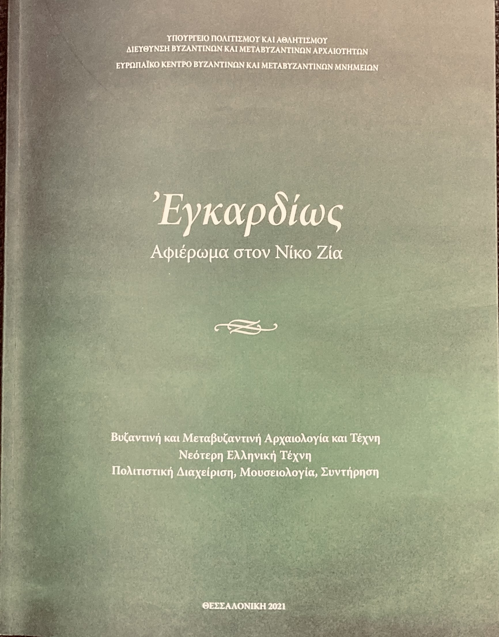 Το Υπουργείο Πολιτισμού και Αθλητισμού παρουσιάζει σήμερα, ανήμερα της Παγκόσμιας Ημέρας Βιβλίου, τον τόμο «Εγκαρδίως», ο οποίος αποτελεί αφιέρωμα στον πρόσφατα εκλιπόντα Νίκο Ζία (1939-2020), τον επιστήμονα και τον ακαδημαϊκό δάσκαλο, ο οποίος για περισσότερα από πενήντα χρόνια εργάστηκε ακάματα για την προστασία, την ανάδειξη, την προβολή, της πολιτιστικής κληρονομιάς του Βυζαντίου και υπηρέτησε με μοναδική αφοσίωση και πίστη για δεκαετίες το Υπουργείο Πολιτισμού και την Αρχαιολογική Υπηρεσία.