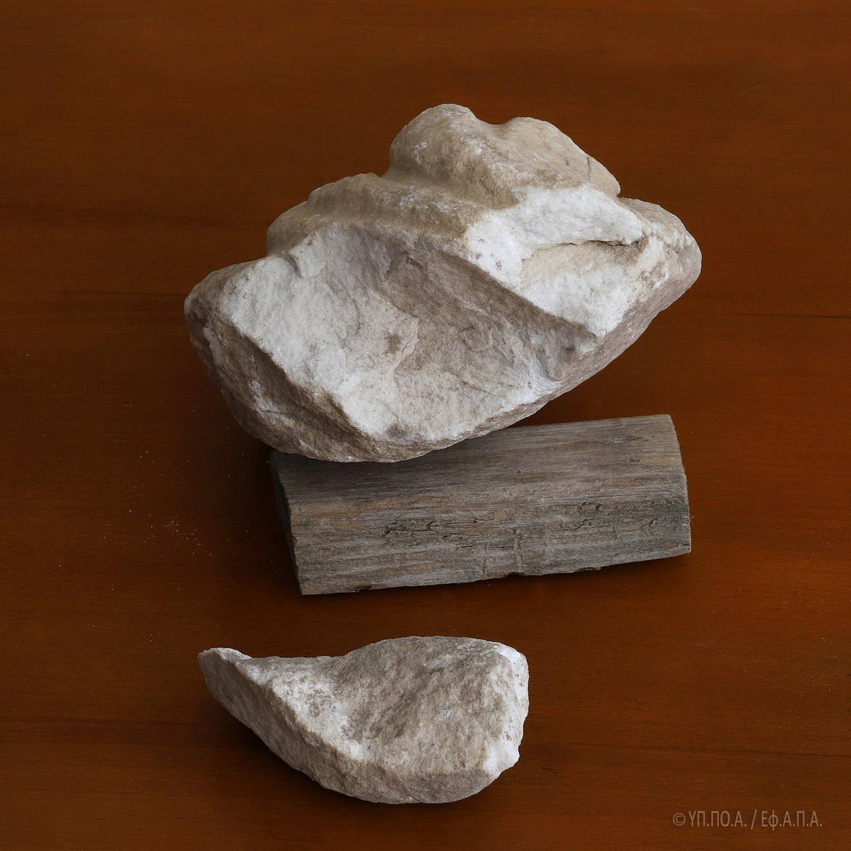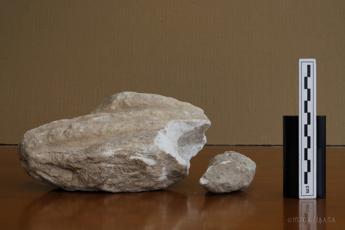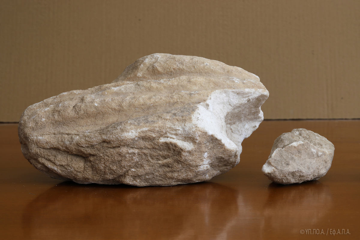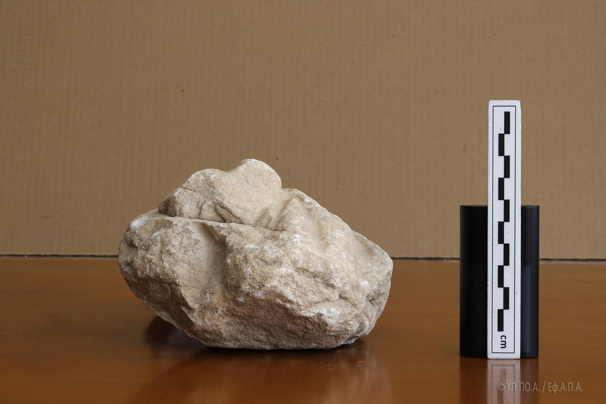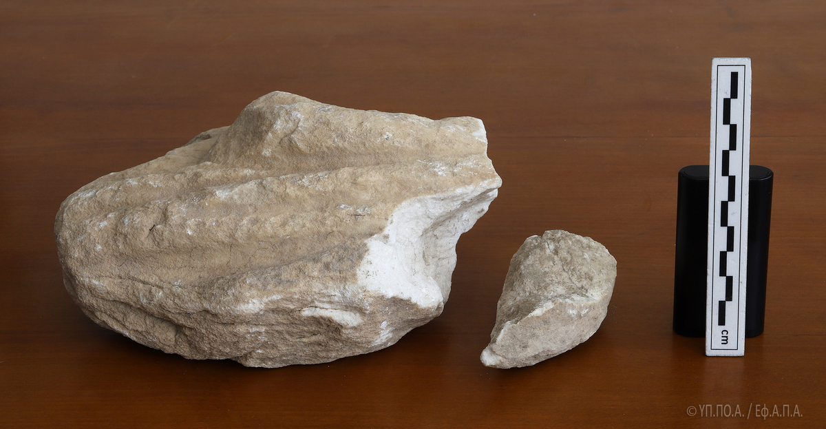 Το εν λόγω θραύσμα, εξαιρετικά διαβρωμένο και με ρηγματώσεις σε όλη του την επιφάνεια, το οποίο, κατά το δημοσίευμα της «Αυγής» κατεστράφη από χρήση κομπρεσέρ, επλήγη κατά τις εργασίες που έγιναν χειρωνακτικά, αποκλειστικά και μόνο με τη χρήση αξίνας και φτυαριού.