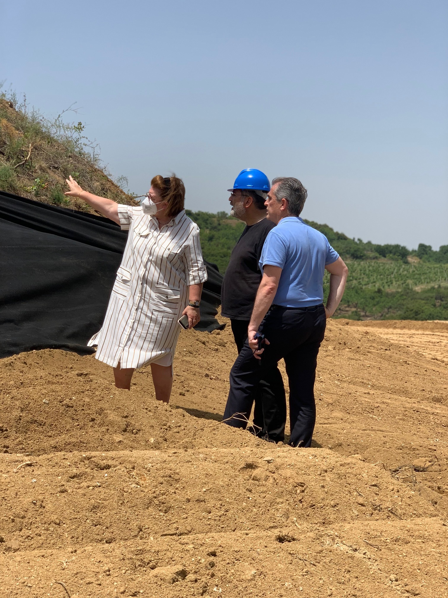 Η Υπουργός ενημερώθηκε για τις εν εξελίξει χωματουργικές εργασίες για την αποκατάσταση της μορφής και του σχήματος του Τύμβου –ενός εξαιρετικά σημαντικού τεχνικού έργου της αρχαιότητας- οι οποίες αναμένεται να ολοκληρωθούν τον Σεπτέμβριο. Αμέσως θα ξεκινήσουν οι γεωτεχνικές εργασίες, που προβλέπουν την κατασκευή μεταλλικών κιβωτίων με ελαφροβαρή υλικά, προκειμένου να δημιουργηθούν τοίχοι αντιστήριξης.