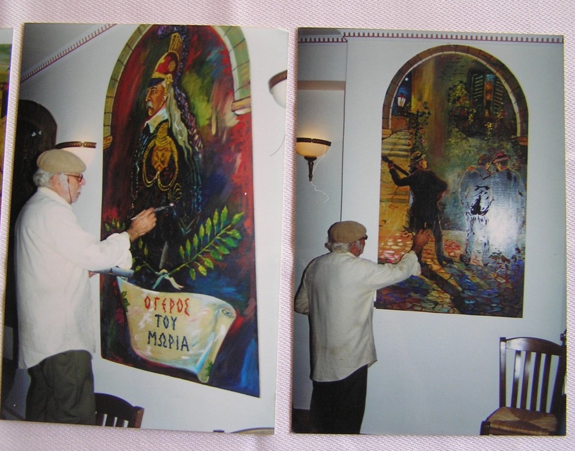Το 1956, μετά από παρότρυνση του Βαγγέλη Οικονομόπουλου, ιδιοκτήτη της ταβέρνας «Βάκχος» στην Πλάκα (δεν σώζεται σήμερα), ο Γιώργιος Σαββάκης αρχίζει να διακοσμεί ταβέρνες της Πλάκας. Συνολικά, θα διακοσμήσει πάνω από 40 πλακιώτικες ταβέρνες. Αρχικά, ζωγραφίζει κυρίως τοιχογραφίες με το χαρακτηριστικό ύφος και τη θεματολογία του, αλλά στη συνέχεια προχωρεί στην εκτέλεση και πινάκων. Πρόκειται για ζωγραφική, κυρίως ελαιογραφίες, σε ξύλο, καμβά ή συχνά σε καμβά προσαρμοσμένο σε ξύλο, μεγάλων ή μικρών σχετικά διαστάσεων, που λειτουργεί είτε αυτόνομα στο περιβάλλον της ταβέρνας, ως καδραρισμένα ή μη έργα είτε πιο οργανικά ενταγμένη στον υπόλοιπο τοιχογραφικό διάκοσμο. Στην περίπτωση αυτή, πρόκειται για μεγαλύτερων διαστάσεων έργα, εκτελεσμένα σχεδόν αποκλειστικά σε ξύλο και με σχετική ζωγραφική διαμόρφωση του ανώτερου ή/και κατώτερου τμήματός τους έτσι ώστε να θυμίζει τοιχοποιία.