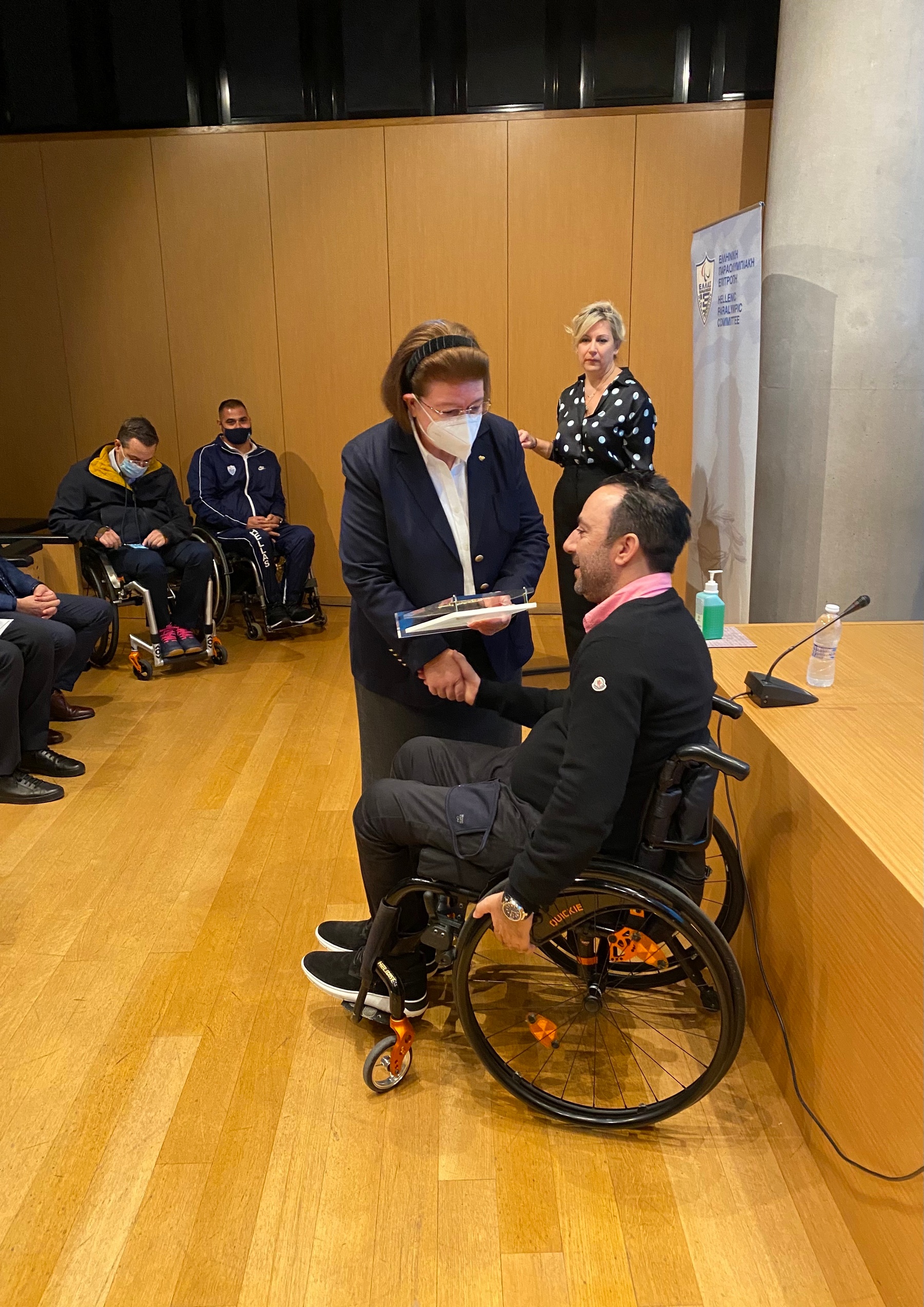Όπως είπε, βραβεύοντας την Υπουργό, ο Πρόεδρος της Επιτροπής Γιώργος Καπελλάκης, «Με τη δράση σας, όλο το προηγούμενο διάστημα, αλλά και με τις δράσεις που προγραμματίζετε στο άμεσο μέλλον, μπορούμε να περάσουμε τα μηνύματα που θέλουμε προς την κοινωνία. Η παρουσία της Παραολυμπιακής Ομάδας στον Ιερό Βράχο, πέρασε μηνύματα σε όλη την Ελλάδα, σε όλη την κοινωνία. Πέρα από το αθλητικό κομμάτι, μας ενδιαφέρει σε μεγάλο βαθμό, να είμαστε πρότυπα της κοινωνίας, σε σχέση με την ισότητα και με τα δικαιώματα που έχουμε. Είναι δικαίωμα μας, ως άτομα με αναπηρία, να έχουμε ισότιμη πρόσβαση και στους χώρους Πολιτισμού. Χάρη στη δική σας πρωτοβουλία, αυτό έχει αρχίσει να γίνεται πράξη και ευελπιστούμε να επεκταθεί στο μέλλον και σε άλλους χώρους, ώστε όλα τα εμποδιζόμενα άτομα να έχουν πρόσβαση στον πλούσιο Πολιτισμό της χώρας μας. Είμαστε αρωγοί και συνεργάτες στην προσπάθεια που κάνετε και είμαστε δίπλα σας σε οτιδήποτε χρειαστείτε».
