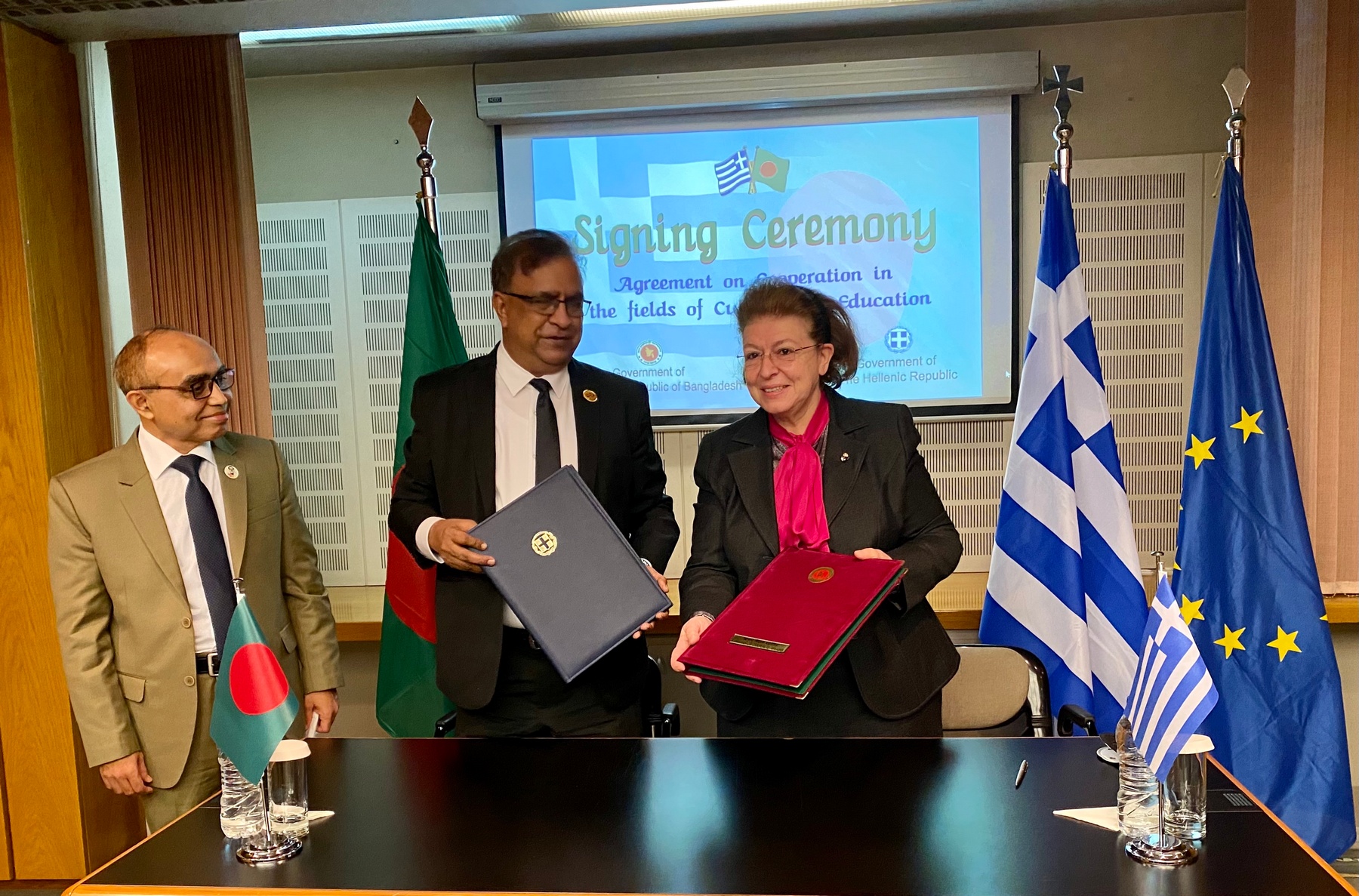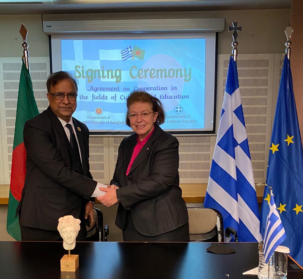 Συμφωνία συνεργασίας για την ενδυνάμωση των σχέσεων μεταξύ Ελλάδας και Μπαγκλαντές στον τομέα του Πολιτισμού υπέγραψαν η Υπουργός Πολιτισμού και Αθλητισμού Λίνα Μενδώνη και ο Υπουργός Πολιτιστικών Υποθέσεων του Μπαγκλαντές K.M. Khalid.