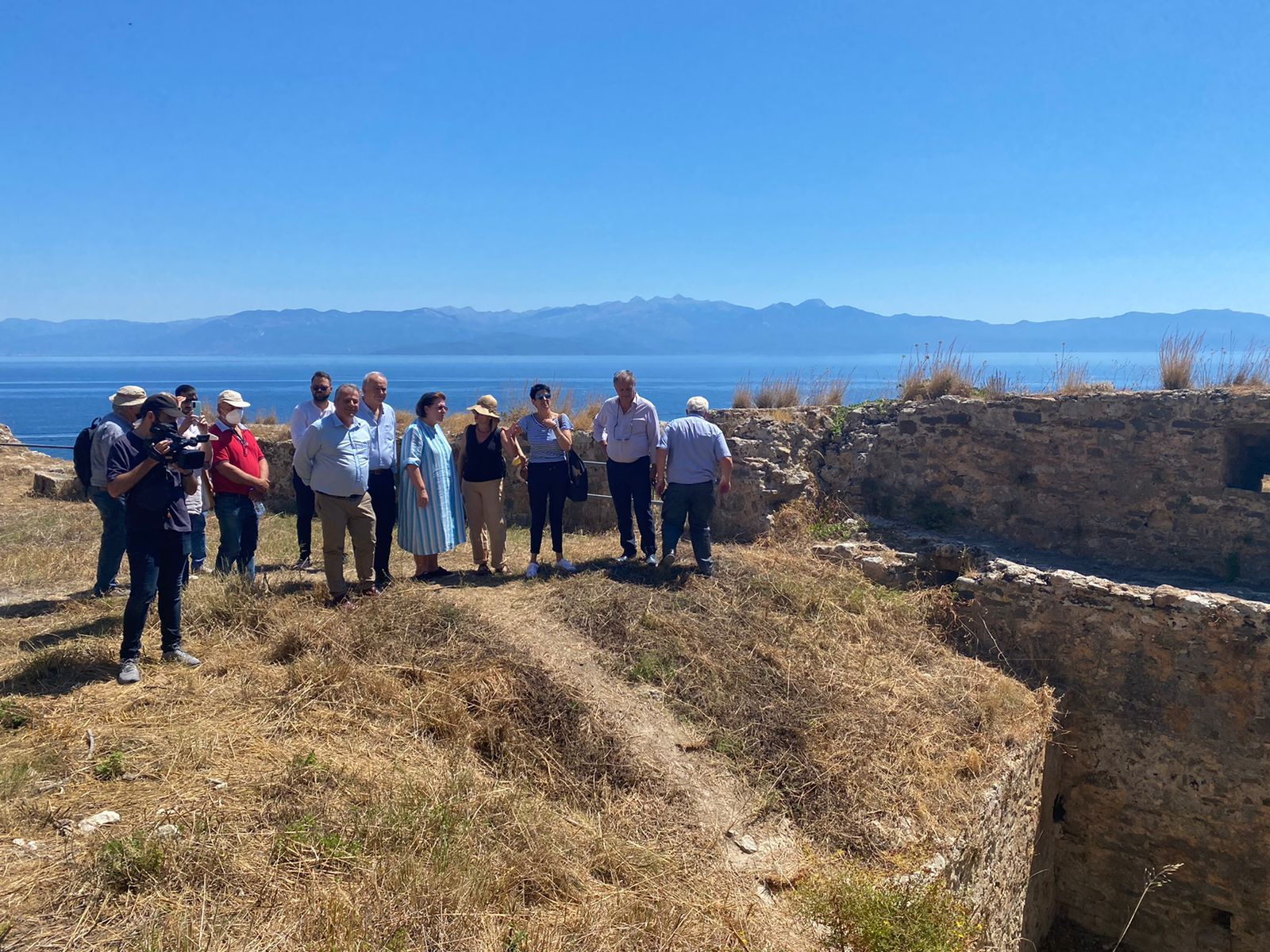 Τη Λίνα Μενδώνη, συνόδευαν ο Γενικός Γραμματέας Πολιτισμού Γιώργος Διδασκάλου, ο Αντιπεριφερειάρχης Μεσσηνίας Βασίλης Καπέλιος, ο Δήμαρχος Πύλου-Νέστορος Παναγιώτης Καρβέλας, ο Βουλευτής Μεσσηνίας Γιάννης Λαμπρόπουλος, η προϊσταμένη της Εφορείας Αρχαιοτήτων Μεσσηνίας Ευαγγελία Μηλίτση, η Αναπληρώτρια Προϊσταμένη της Διεύθυνσης Αναστήλωσης Βυζαντινών και Μεταβυζαντινών Μνημείων του Υπουργείου Πολιτισμού και Αθλητισμού Ευθυμία Χωραφά και υπηρεσιακά στελέχη του ΥΠΠΟΑ.