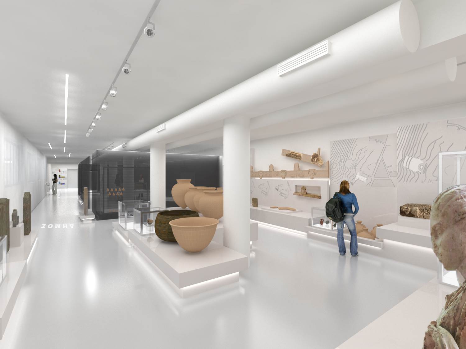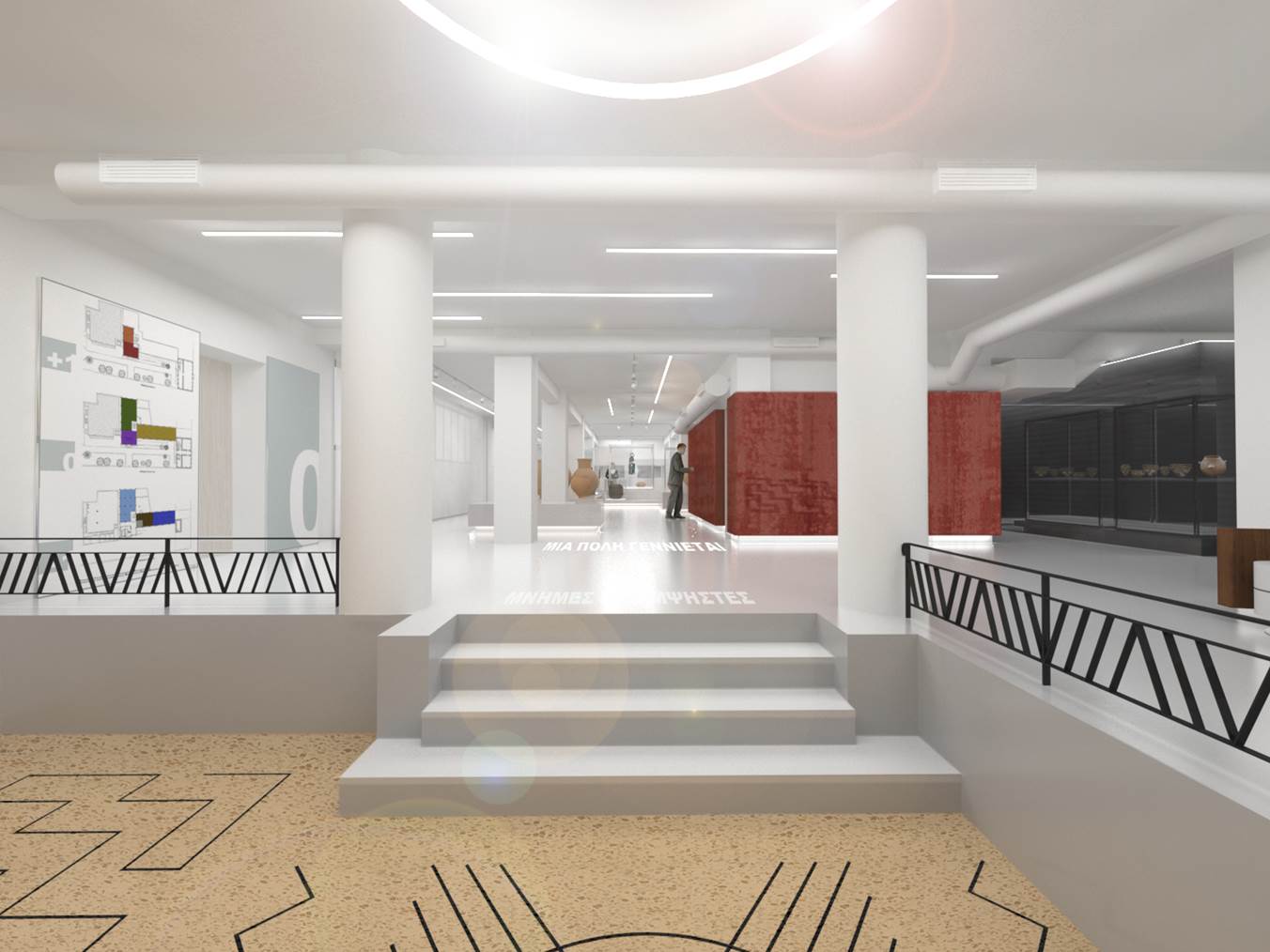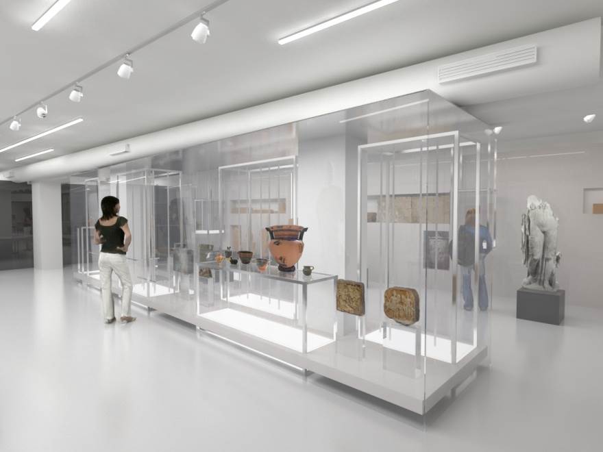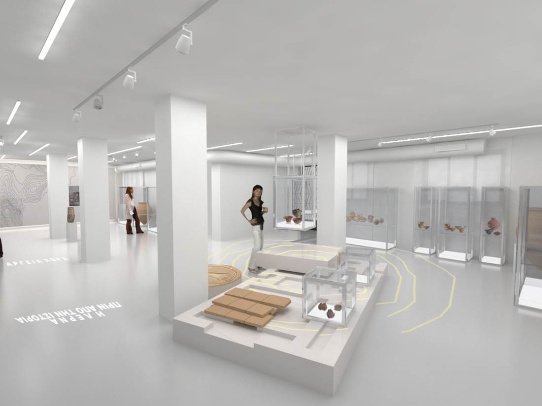Ο μουσειογραφικός σχεδιασμός στοχεύει να εξυπηρετήσει τις γενικές αρχές οργάνωσης ενός μουσειακού χώρου με ενιαία αντιμετώπιση και λειτουργική συνοχή του συνόλου, σύγχρονο εξοπλισμό, άνετη κίνηση, ασφάλεια και καθολική προσβασιμότητα του κοινού. Η μεταφορά της ιδέας του ιστορικού και αρχαιολογικού παλίμψηστου στο χώρο, χρησιμοποιεί ως εργαλεία την έκθεση των ευρημάτων σε διαφορετικές στάθμες, τη διαφάνεια των κατασκευών με την οποία ενισχύεται η δυνατότητα της οπτικής επικοινωνίας ανάμεσα στις θεματικές ενότητες, καθώς και τη δυνατότητα ανάγνωσης του αρχαιολογικού υλικού προοπτικά, μέσα από την οπτική αλληλεπίδραση, ενσωμάτωση στις εκθεσιακές κατασκευές ψηφιακών τεχνολογιών (ακουστικά εκθέματα, διαδραστικές εφαρμογές κλπ.).