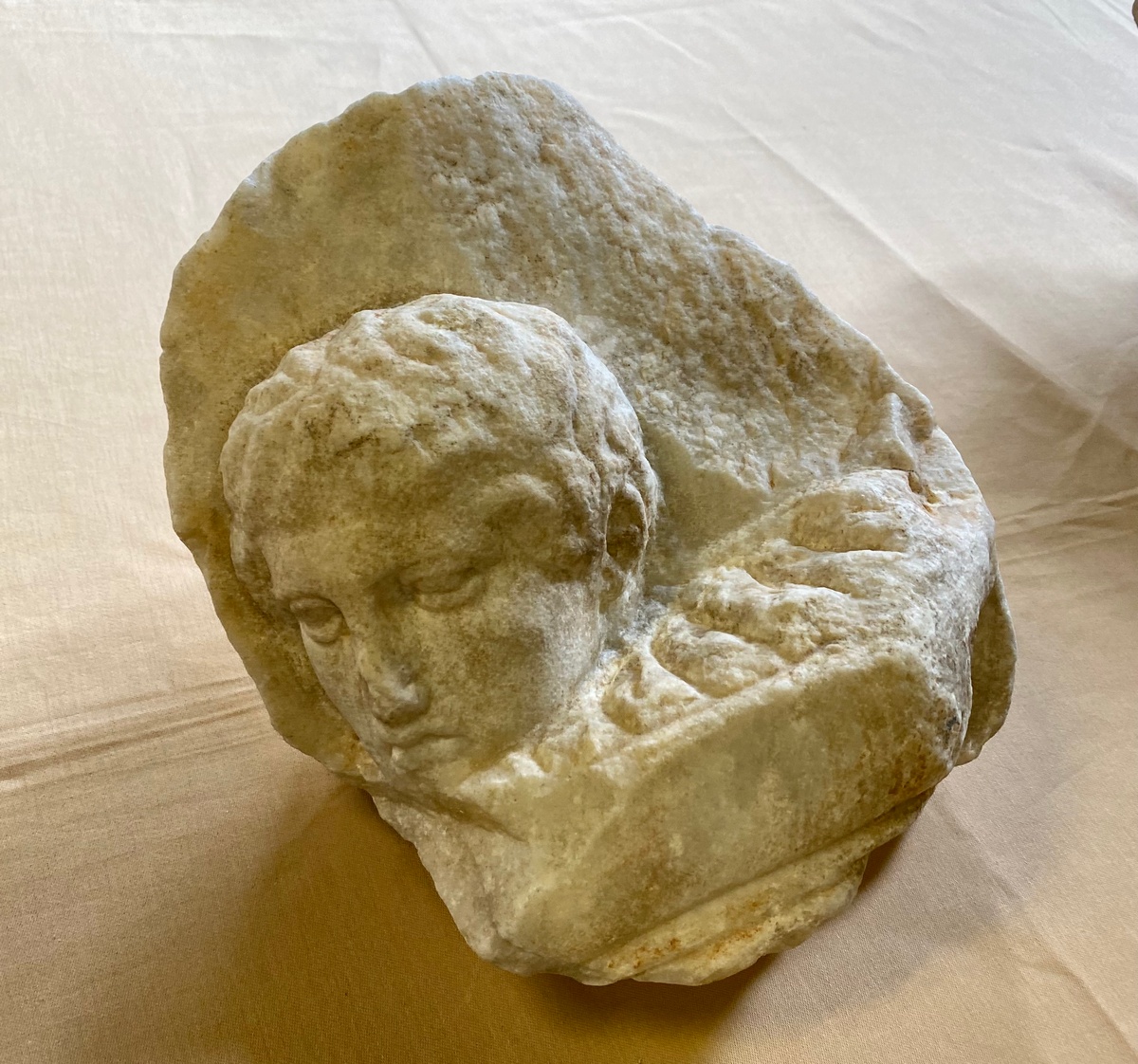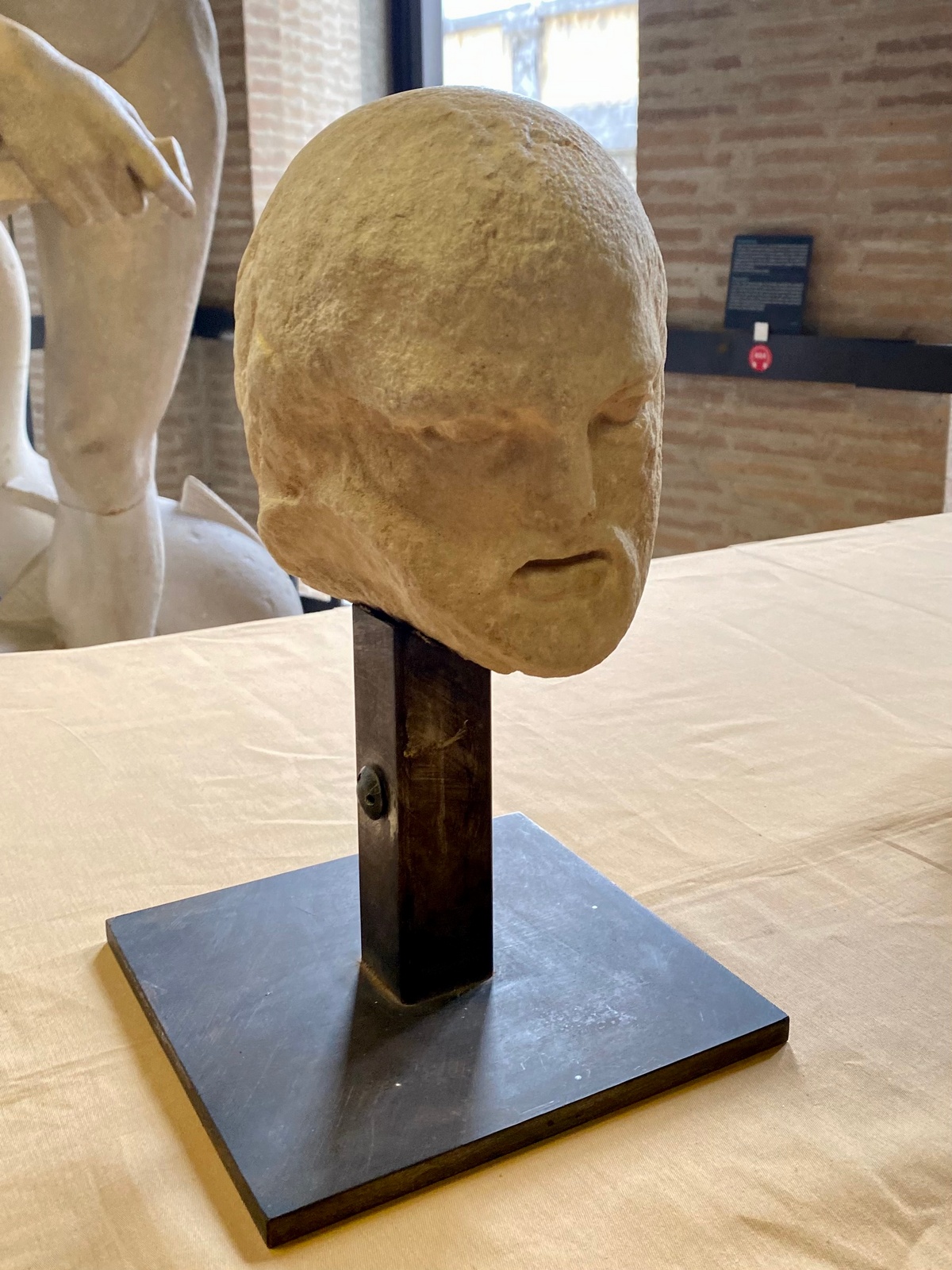 Το πρώτο απεικονίζει το κεφάλι ενός αλόγου από το δυτικό αέτωμα, το δεύτερο κεφαλή άνδρα που κρατάει ένα δίσκο και το τρίτο ανάγλυφο, απεικονίζει γενειοφόρο ανδρικό κεφάλι.