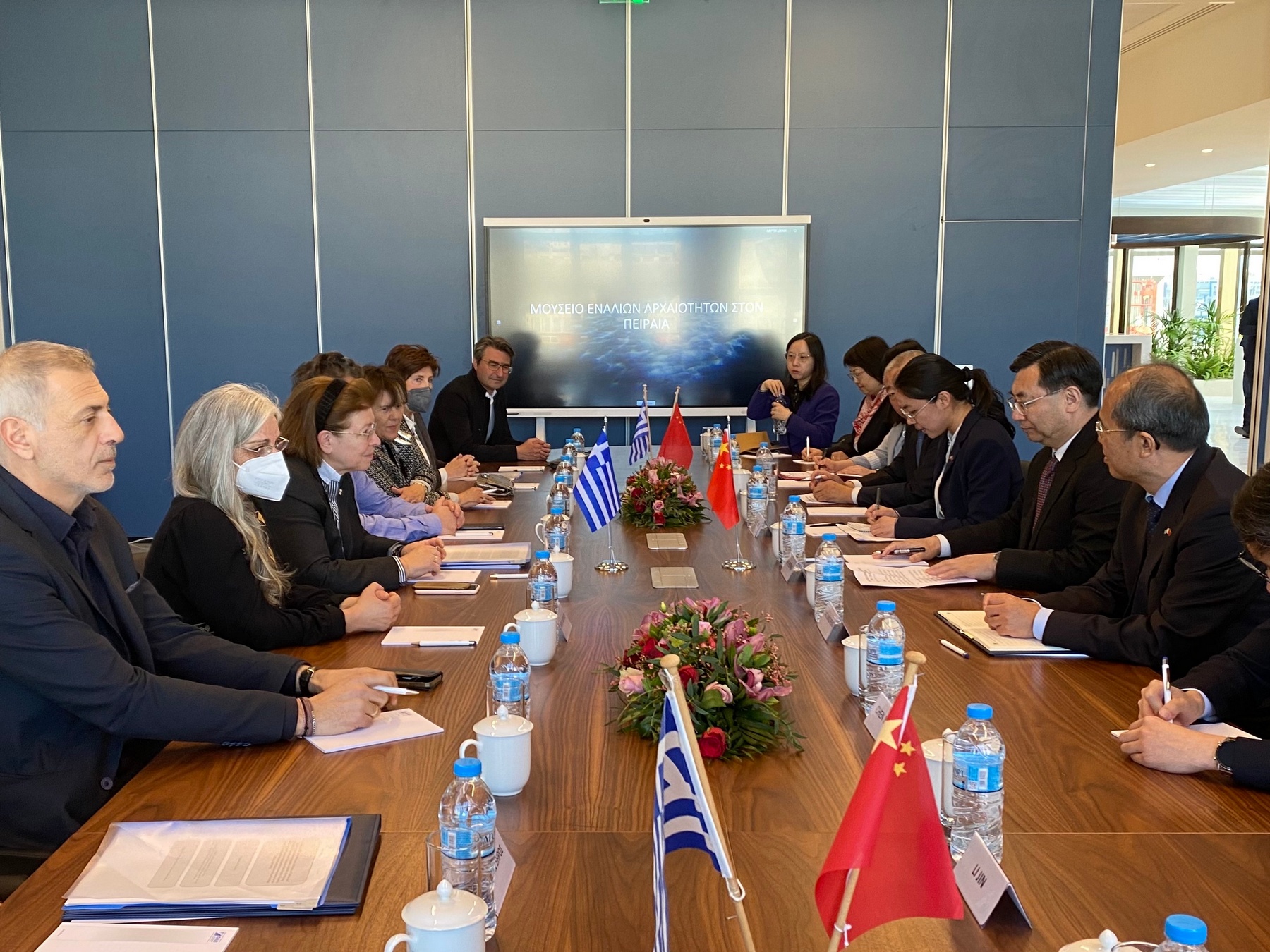 Οι δύο Υπουργοί υπέγραψαν την ανανέωση και την διεύρυνση της Συμφωνίας Συνεργασίας στον τομέα της Ενάλιας Πολιτιστικής Κληρονομιάς, στο πλαίσιο της οποίας ενθαρρύνεται η επιστημονική συνεργασία και κοινές ενάλιες αρχαιολογικές έρευνες στην Ελλάδα και στην Κίνα. Εκτενής συζήτηση έγινε για την ίδρυση του Μουσείου Εναλίων Αρχαιοτήτων στο κτήριο του Σιλό, στο λιμάνι του Πειραιά, σύμφωνα με την σύμβαση παραχώρησης μεταξύ του ΥΠΠΟΑ και της COSCO. Το έργο του Μουσείου είναι στη διαδικασία επιλογής αναδόχου για την κατασκευή του, ενώ η χρηματοδότηση του έργου, προϋπολογισμού 100.000.000 ευρώ έχει εξασφαλισθεί από το Ταμείο Ανάκαμψης.