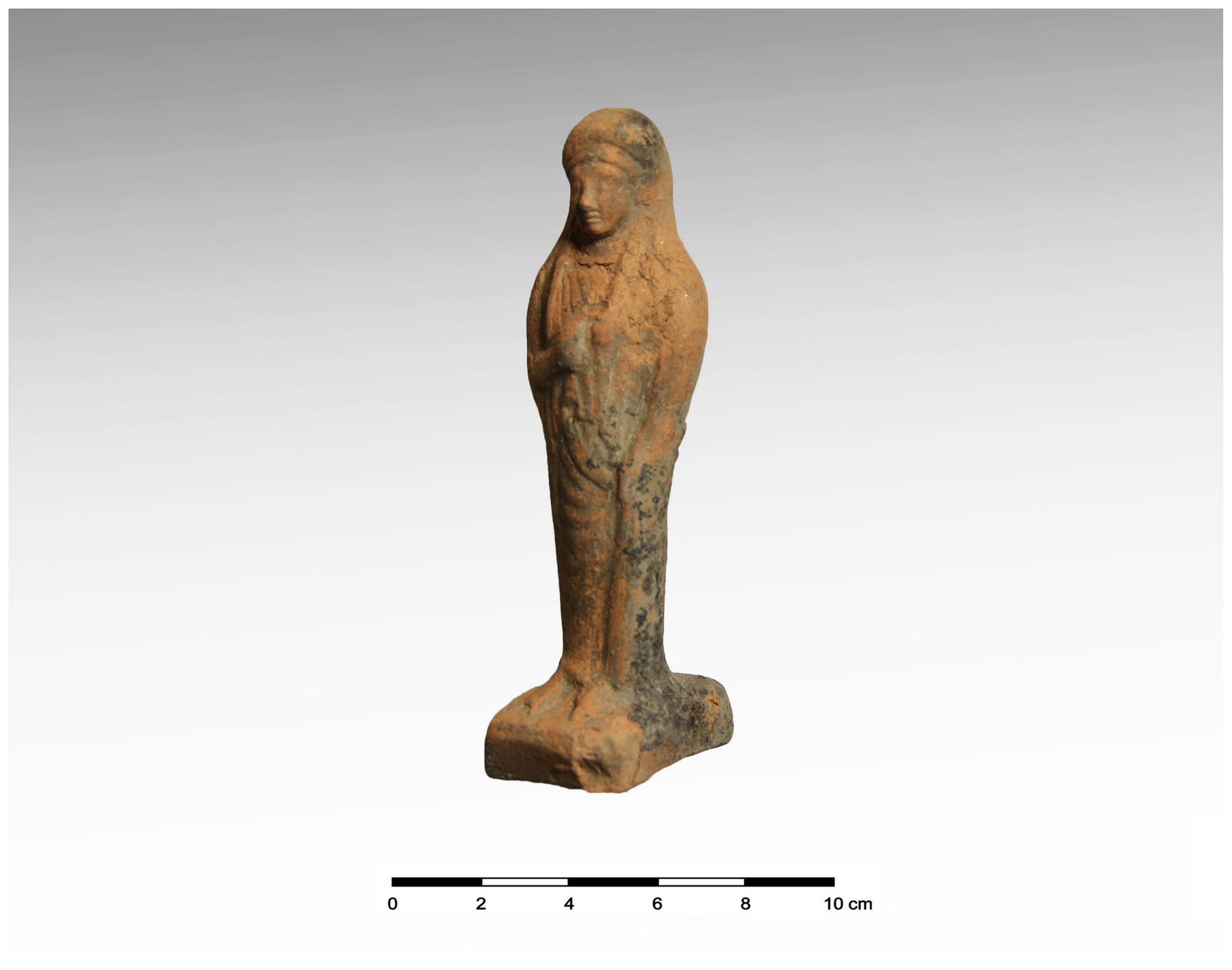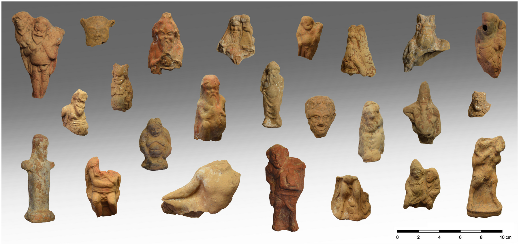Αρκετά αγγεία πόσεως, κυρίως ρωμαϊκών χρόνων, προερχόμενα τόσο από το εσωτερικό του ναού (Κτιρίου 4), όσο και από τις διάφορες επιχώσεις εντός του Κτηρίου 3 και από τον «αποθέτη», ταυτίζονται ως τελετουργικά καθώς έχουν επιγραφές που χαράχθηκαν πριν την όπτηση και αποτελούν αφιερώματα γυναικών, ενώ επιβεβαιώνουν ότι το ιερό ήταν αφιερωμένο στη λατρεία τόσο της Δήμητρας όσο και της Κόρης. Προσωρινά, θα μπορούσαμε μάλιστα να υποθέσουμε ότι το Κτήριο 4 ήταν ο ναός της Δήμητρας, ενώ το παρακείμενο μικρότερο Κτήριο 5 αυτός της Κόρης.