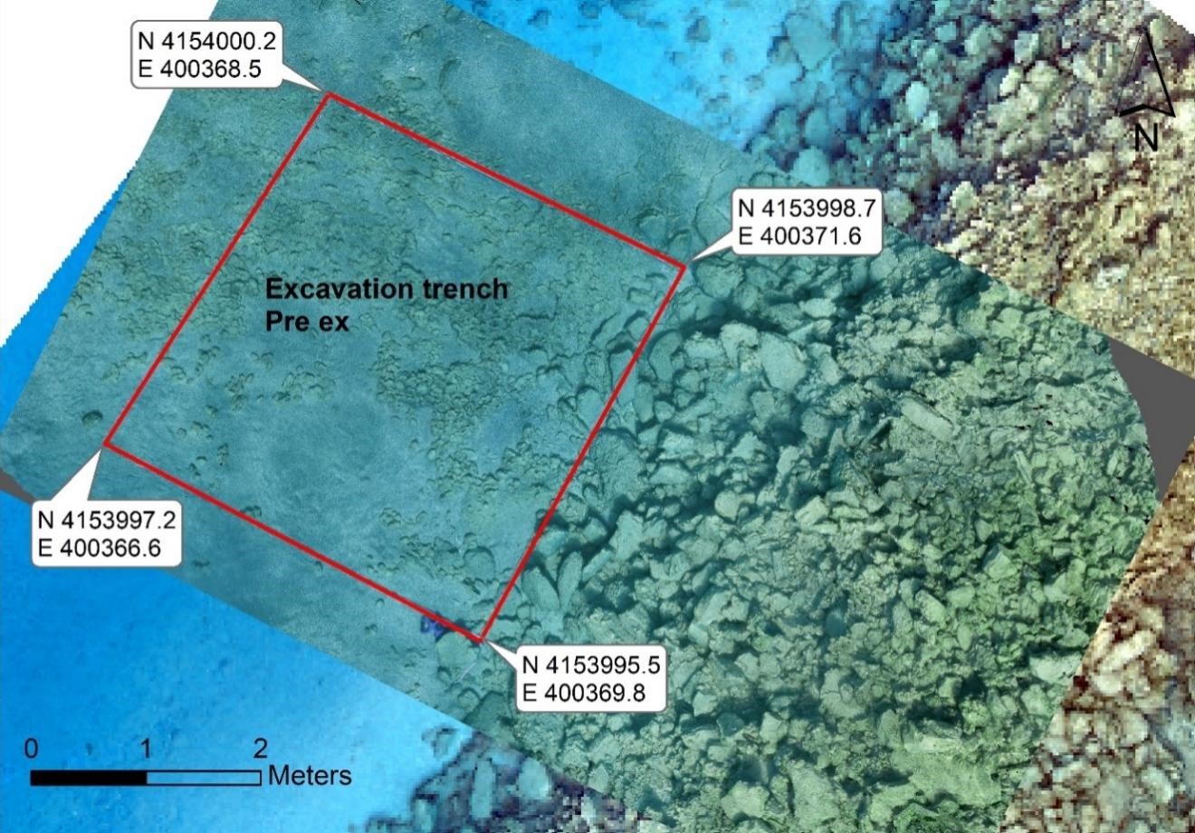 Το επόμενο βήμα θα είναι η διενέργεια μίας ή ενδεχομένως δύο τομών στην κορυφή του πλατώματος. Η τομή θα ανασκαφεί χειρωνακτικά και τα ιζήματα θα αφαιρεθούν με βυθοκόρηση. Τυχόν αντικείμενα και οικοδομικά κατάλοιπα θα καταγραφούν in situ χρησιμοποιώντας φωτογραμμετρία.