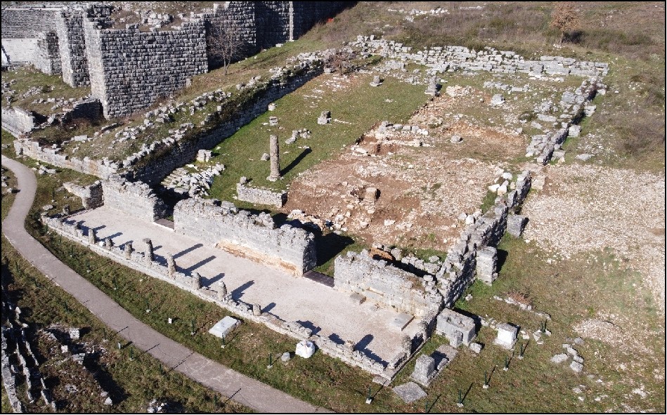 Η χρήση του Βουλευτηρίου συνδέεται με τη Συμμαχία και αργότερα με το Κοινό των Ηπειρωτών. Σήμερα βρίσκεται σε κεντρική θέση του οργανωμένου επισκέψιμου αρχαιολογικού χώρου. Το οικοδόμημα ήταν μεγάλων διαστάσεων με ενιαία στέγη, με τρεις σειρές κιόνων, δωρική στοά με 15 κίονες στη νότια πλευρά, εσωτερικό κοίλο με αναβαθμούς και είσοδο από δύο μεγάλα ανοίγματα, με ασβεστολιθικά κατώφλια. Το Βουλευτήριο έχει τρεις κύριες οικοδομικές φάσεις. Η πρώτη τοποθετείται χρονικά στις αρχές 3ου αιώνα π.Χ. επί βασιλείας Πύρρου, στο πλαίσιο ενός μεγάλου οικοδομικού προγράμματος που περιλάμβανε το Βουλευτήριο, το Πρυτανείο, το Θέατρο και το Στάδιο. Η δεύτερη οικοδομική φάση χρονολογείται μετά την αιτωλική καταστροφή (219 π.Χ.), και η τρίτη μετά τη ρωμαϊκή επέμβαση (167 π.Χ.), οπότε το Βουλευτήριο επισκευάστηκε και συνέχισε να λειτουργεί. Στα ύστερα ρωμαϊκά χρόνια, η περιοχή συνέχισε να λειτουργεί, αλλά με άλλη χρήση. Οι τέσσερις τάφοι που έχουν εντοπιστεί ανήκουν σε αυτή τη φάση. Η τελική καταστροφή του κτηρίου τοποθετείται στον μεγάλο σεισμό του 522–528 μ.Χ.
