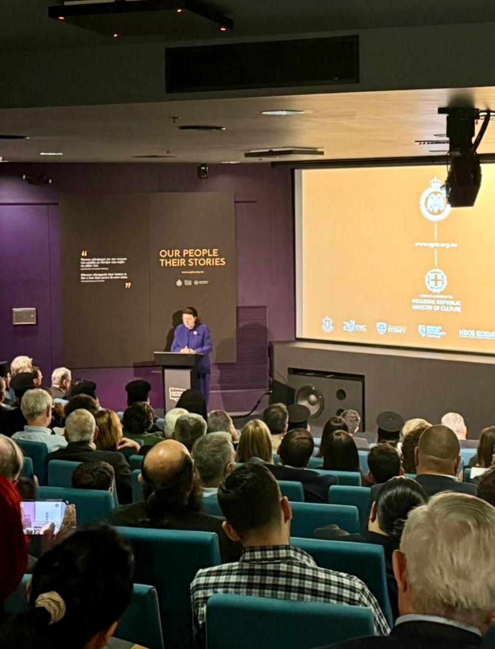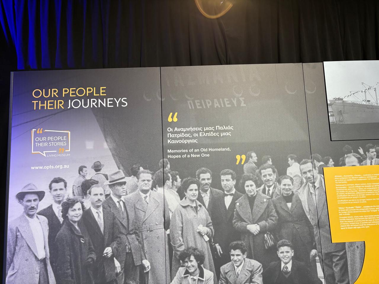 Στο Σίδνεϋ, στο κατάμεστο αμφιθέατρο του Εθνικού Ναυτικού Μουσείου της Αυστραλίας, από Έλληνες της Διασποράς, κάθε ηλικίας, και σε ατμόσφαιρα βαθύτατης συγκίνησης, έγινε η επίσημη παρουσίαση για το πρώτο έτος της λειτουργίας του εικονικού μουσείου «Our People, Their Stories»- «Οι άνθρωποί μας, οι ιστορίες τους», παρουσία του Αρχιεπισκόπου Αυστραλίας κ.κ. Μακαρίου, ενώπιον της Υπουργού Πολιτισμού Λίνας Μενδώνη και του Πρέσβη της Ελλάδος στην Καμπέρα Σταύρου Βενιζέλου. Το εικονικό Μουσείο αποτελεί πρωτοβουλία του Σεβασμιωτάτου Αρχιεπισκόπου Αυστραλίας κ.κ. Μακαρίου, ενώ τελεί υπό την αιγίδα του Ελληνικού Υπουργείου Πολιτισμού. Πρόκειται για έναν ανθρώπινο φόρο μνήμης και τιμής, αλλά και υπόδειγμα ιστορικής έρευνας και πολιτιστικής δράσης, με παγκόσμια εμβέλεια. Στον ένα χρόνο λειτουργίας του, το Εικονικό Μουσείο κατέγραψε σχεδόν 11.000.000 επισκέπτες.