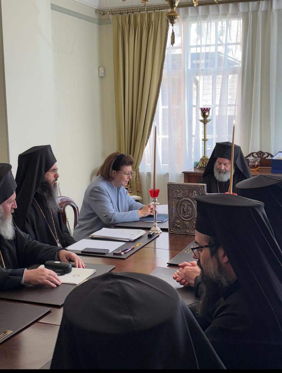 Νωρίτερα, η Επαρχιακή Σύνοδος της Ιεράς Αρχιεπισκοπής Αυστραλίας υποδέχθηκε σε πανηγυρική συνεδρία της την Υπουργό Πολιτισμού Λίνα Μενδώνη. Ο Αρχιεπίσκοπος κ.κ. Μακάριος προσφωνώντας την Υπουργό ανέφερε: «Πάντοτε αισθανόμαστε την εγγύτητα, τη μέριμνα και το ενδιαφέρον σας για τον Ελληνισμόν της Αυστραλίας. Παρακαλούμε θερμώς να μεταφέρετε τις εγκάρδιες ευχές και προσευχές μας και στον Εξοχότατο Πρωθυπουργό της Χώρας Κυριάκο Μητσοτάκη, ο οποίος δείχνει ένα ξεχωριστό και πολυεπίπεδο ενδιαφέρον τόσο θεσμικώς ως εκ της θέσεως του, όσο και προσωπικώς και τούτο είναι κάτι που μας συγκινεί και μας χαροποιεί βαθύτατα».