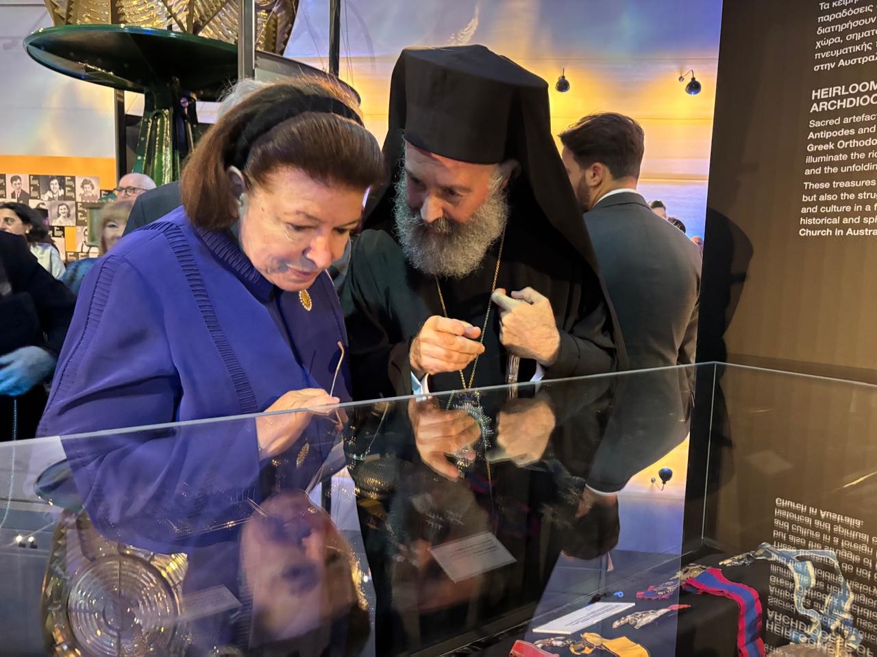 Στη συνέχεια έγινε η παρουσίαση της έκθεσης, στην παρακείμενη αίθουσα, με πολύτιμα τεκμήρια της ορθόδοξης παράδοσης της ελληνικής παρουσίας στην Αυστραλία, και με πλούσιο φωτογραφικό υλικό.
