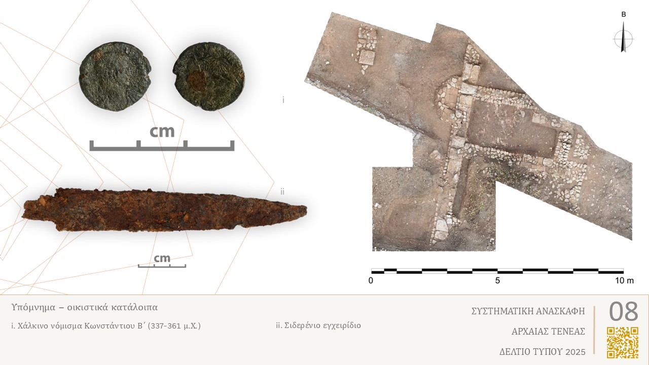Τον Οκτώβριο του 2025 ολοκληρώθηκαν οι εργασίες της συστηματικής ανασκαφής της αρχαίας Τενέας. Πέριξ του Ταφικού Μνημείου ΙΙΙ (Εικ.1) αποκαλύφθηκε εκτεταμένο συγκρότημα με χρήση από τους αρχαϊκούς έως τους ρωμαϊκούς χρόνους.