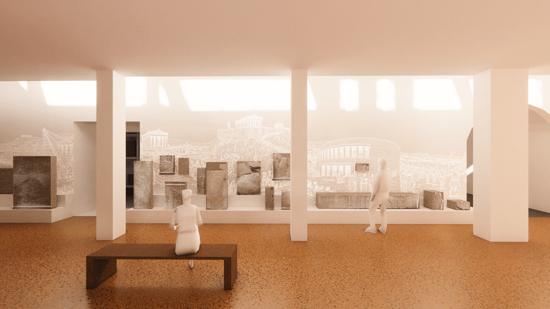 - στην οργάνωση των βασικών εκθεσιακών ενοτήτων. Στο ΕΑΜ εστιάζει στην ανάδειξη και χωροθέτηση της εισαγωγής και του επιλόγου της έκθεσης, στην παρουσίαση του «κεντρικού άξονα», ο οποίος δομείται γύρω από εμβληματικά αντικείμενα - εκθέματα, παράλληλα με τον κεντρικό και τους γύρω από αυτόν, άξονες. Για το Επιγραφικό Μουσείο, η παρουσίαση της έκθεσης αναπτύσσεται σε τρία επίπεδα (έκθεση σε νησίδες, ελεύθερα μνημεία, πανόραμα, ανοικτή αποθήκευση και έρευνα).