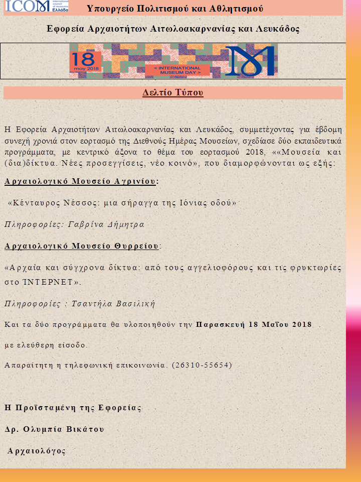 ΕΟΡΤΑΣΜΟΣ ΤΗΣ ΔΙΕΘΝΟΥΣ ΗΜΕΡΑΣ ΜΟΥΣΕΙΩΝ ΑΠΟ ΤΗΝ ΕΦΑΑΙΤΛ Ν