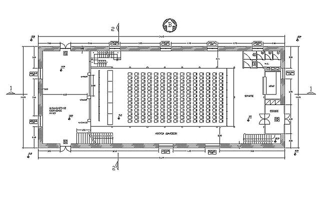 Περιμετρικά, στις τρεις πλευρές του χώρου, κατασκευάστηκε ανοικτό πατάρι το οποίο στην ανατολική πλευρά έχει μεγαλύτερες διαστάσεις για να καλύψει στο ισόγειο, την είσοδο, ένα μικρό αναψυκτήριο και τους αναγκαίους χώρους υγιεινής, ενώ στον όροφο δημιουργούνται οι χώροι για το μεταφραστικό.