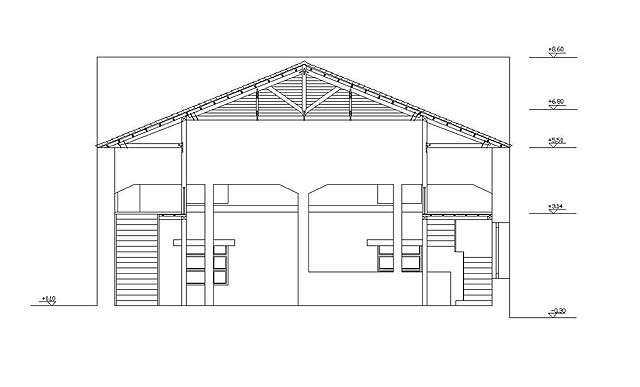 Το ισόγειο τμήμα του κτιρίου στεγάσηκε με κεραμοσκεπή στέγη σε φέροντα οργανισμό από σιδερένιο σκελετό.
