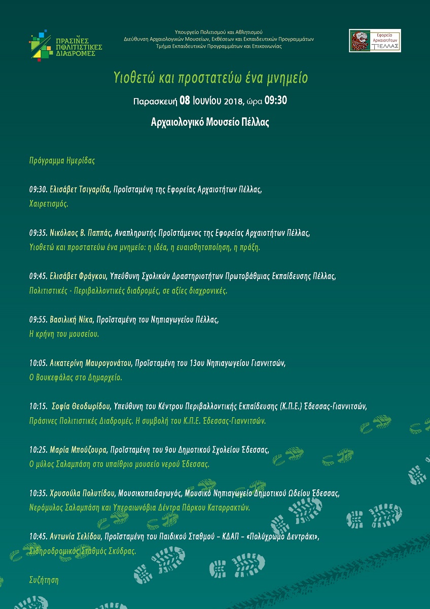 Οι προτάσεις θα παρουσιαστούν σε ειδική Ημερίδα, που θα πραγματοποιηθεί την Παρασκευή 8 Ιουνίου 2018 και ώρα 09:30 στο Αρχαιολογικό Μουσείο Πέλλας.