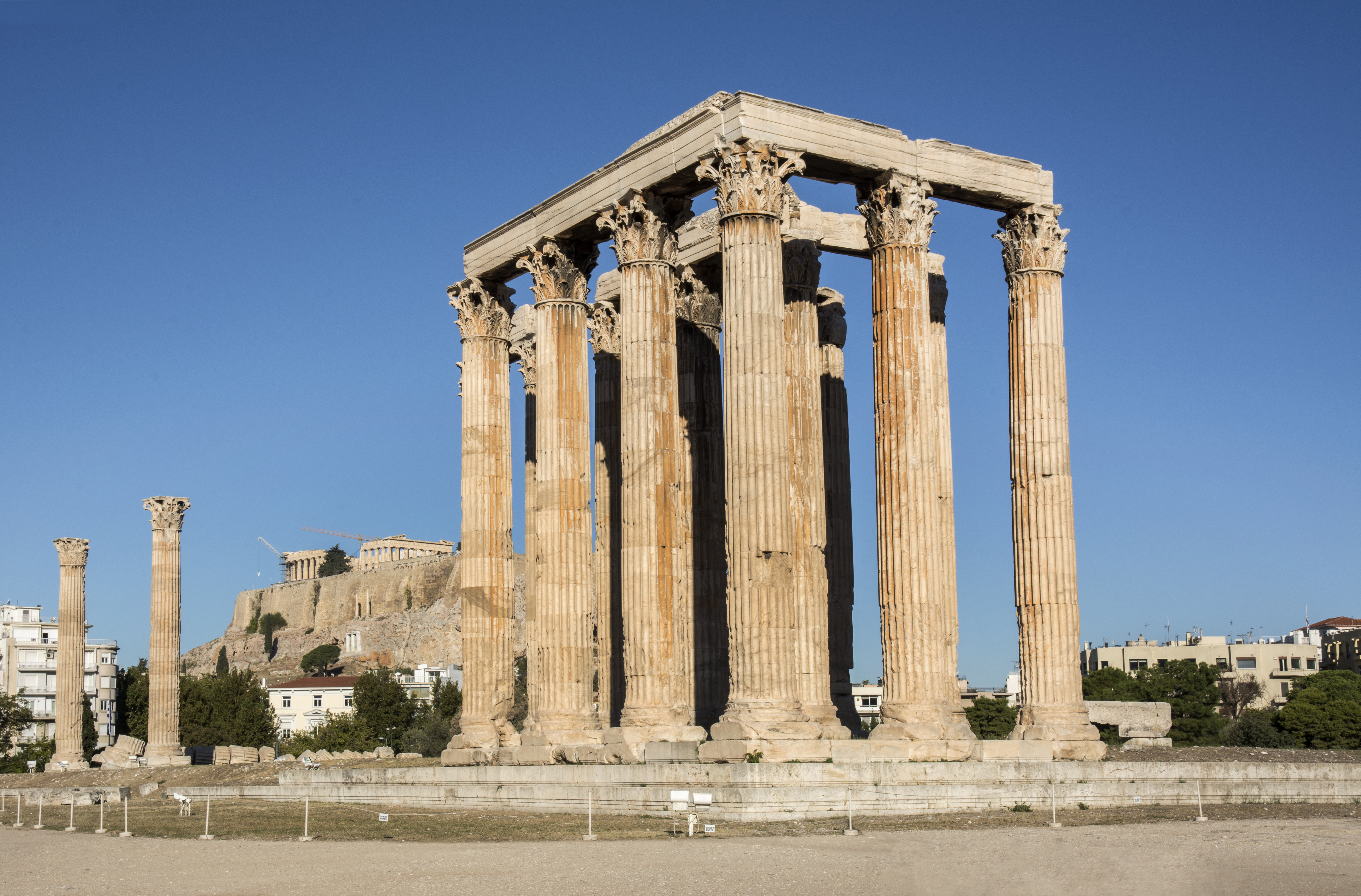 Ο ναός του Ολυμπίου Διός, στις όχθες του Ιλισού, ένας από τους μεγαλύτερους ναούς της αρχαιότητας και σημείο αναφοράς στην πόλη της Αθήνας, άρχισε να κτίζεται από τους Πεισιστρατίδες γύρω στο 515 π.Χ. και αποπερατώθηκε από τον Αδριανό το 131/2 μ.Χ. Ο ναός υπέστη εκτεταμένη καταστροφή στη διάρκεια των αιώνων. Σήμερα από τους 104 εξωτερικούς κίονες σώζονται μόνο δεκαπέντε όρθιοι και ένας, ο οποίος έπεσε στη διάρκεια θύελλας τον Οκτώβριο του 1852. Η πρώτη σωστική επέμβαση στον ναό πραγματοποιήθηκε το 1835, ενώ το 1892 στερεώθηκαν τα τρία ρηγματωμένα επιστύλια του ναού, σύμφωνα με μελέτη του Ernest Ziller.
