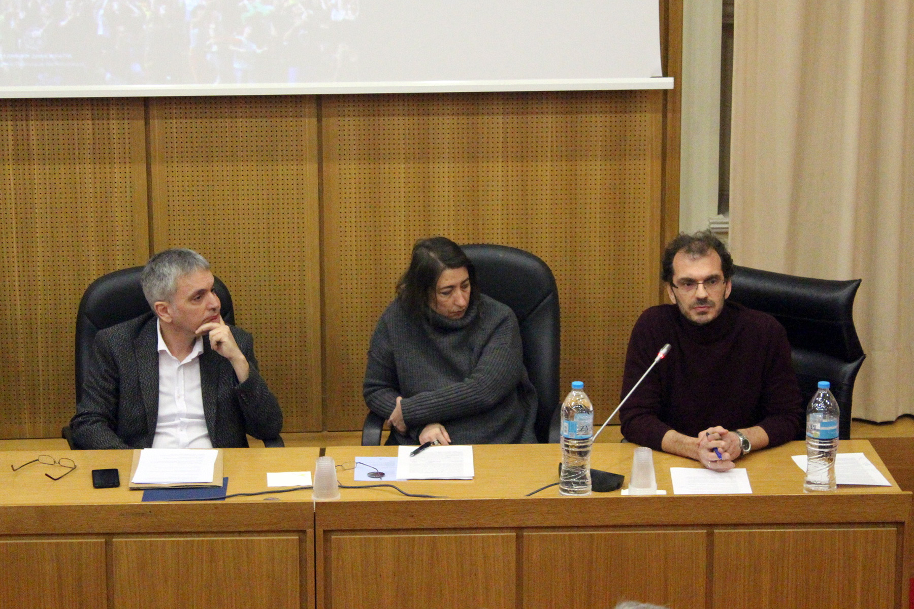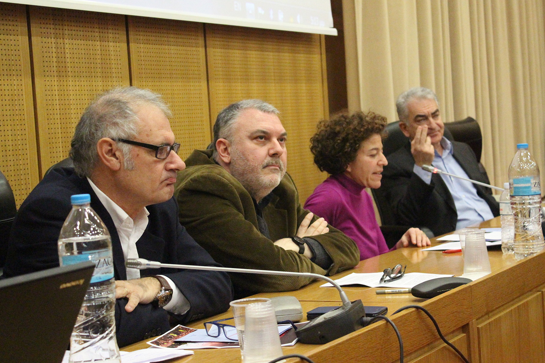 1ο στρογγυλό τραπέζι (17:00-18:00) με ομιλητές την καθηγήτρια στο Πάντειο Μάρθα Μιχαηλίδου, τον καθηγητή ΕΚΠΑ Νίκο Παναγιωτόπουλο, τον βουλευτή του ΣΥΡΙΖΑ και καθηγητή ΕΜΠ Δημήτρη Σεβαστάκη και τον καθηγητή ΑΠΘ Γιάννη Σταυρακάκη.