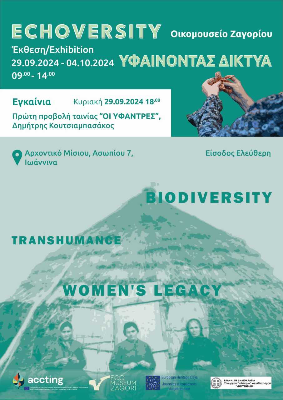 Παραχώρηση στο Οικομουσείο Ζαγορίου για μια εβδομάδα, από 29 Σεπτεμβρίου έως και τις 5 Οκτωβρίου, του Εκθεσιακού χώρου του Αρχοντικού Μίσιου, για τις ανάγκες της έκθεσης " Υφαίνοντας Δίκτυα"- Ανάδειξη της σημασίας της μετακινούμενης κτηνοτροφίας στην διατήρηση της βιοποικιλότητας, που γίνεται στο πλαίσιο των Ευρωπαϊκών Ημερών Πολιτιστικής Κληρονομιάς που φέτος γιορτάζονται από τις 28-29 Σεπτεμβρίου.