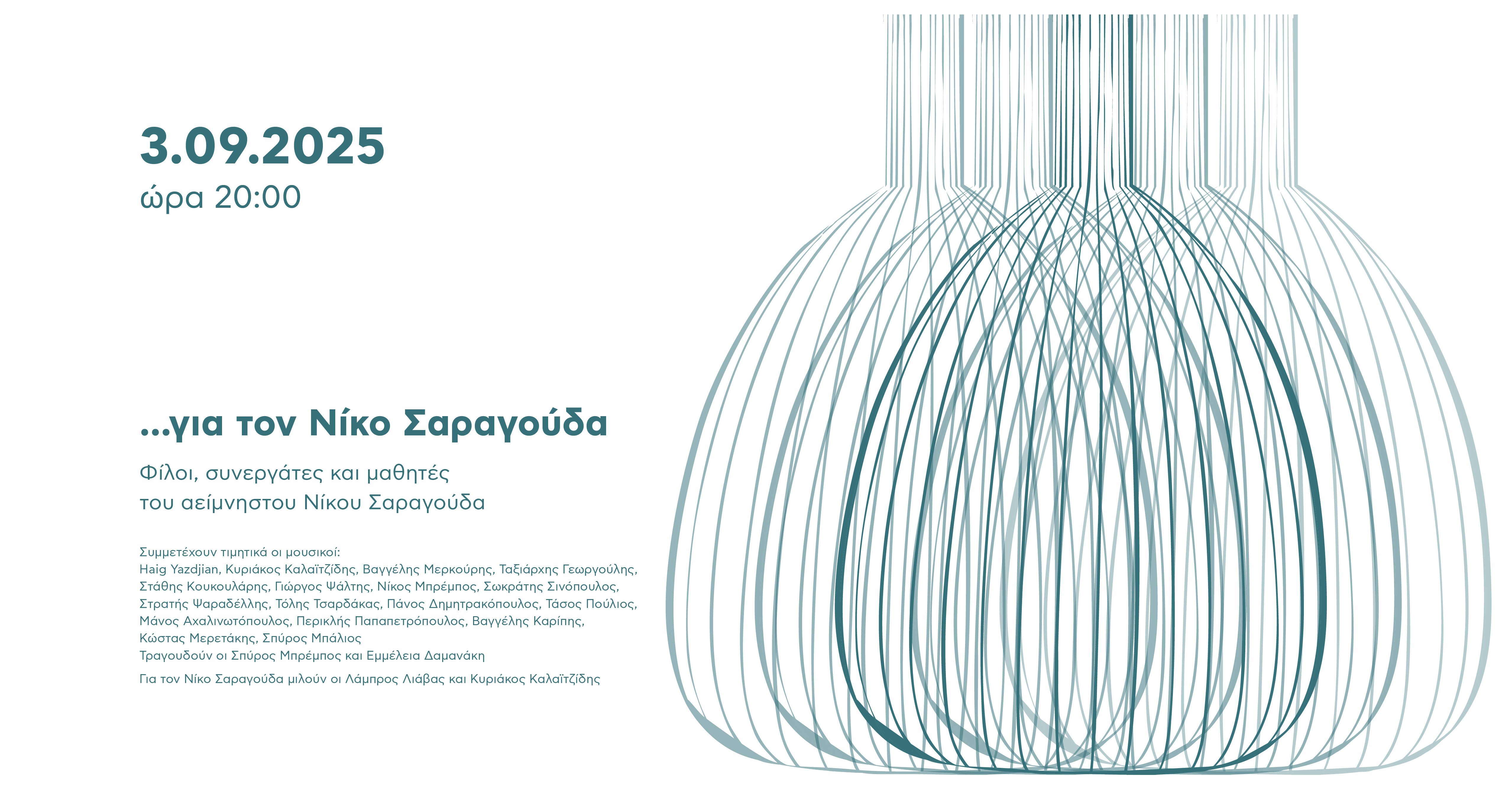 Παίζουν τιµητικά οι µουσικοί –φίλοι, συνεργάτες και µαθητές του Νίκου Σαραγούδα: