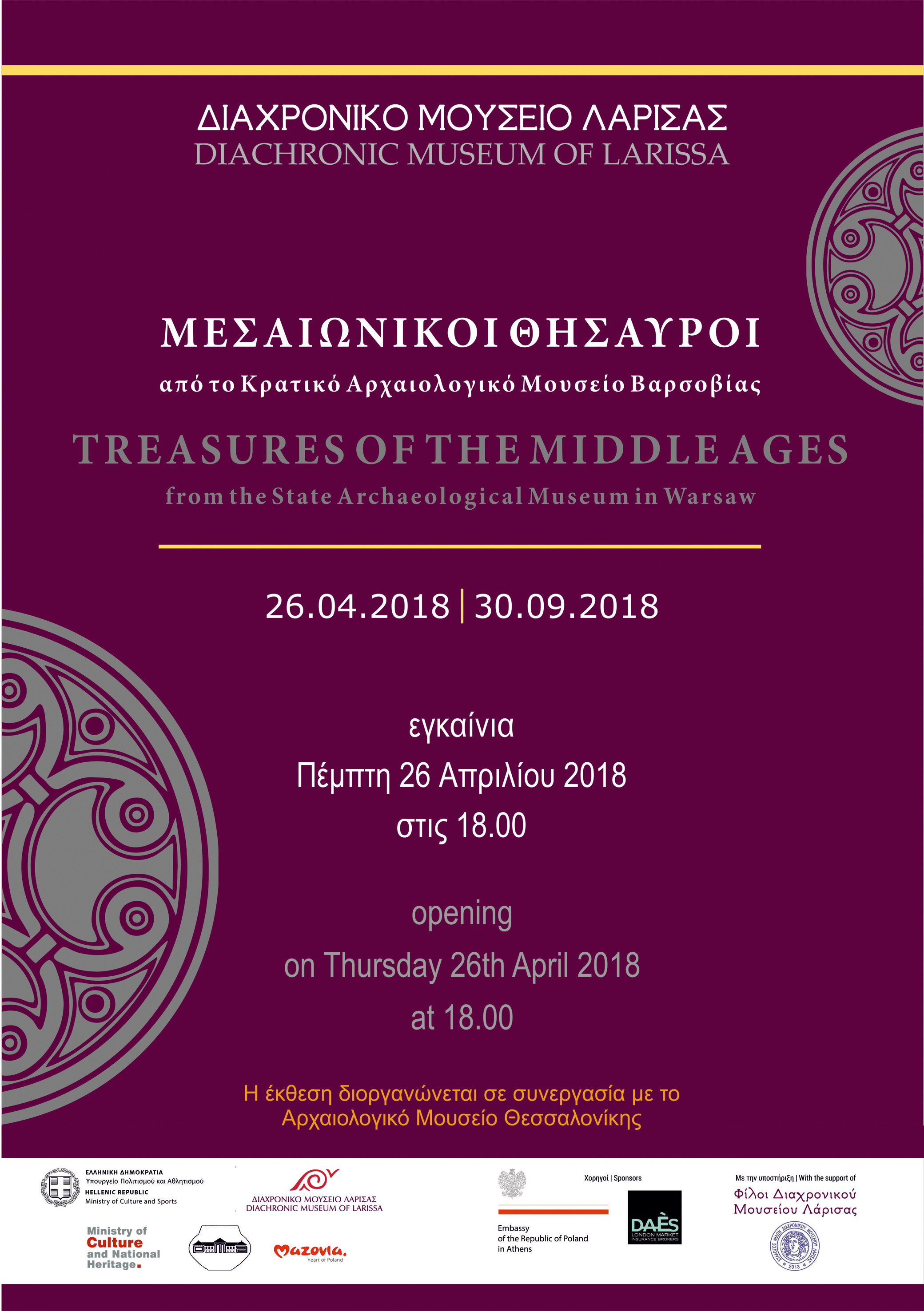 Το Διαχρονικό Μουσείο Λάρισας ξεκινά τη συνεργασία του με το Κρατικό Αρχαιολογικό Μουσείο Βαρσοβίας και φιλοξενεί την έκθεση «Μεσαιωνικοί θησαυροί / Treasures of the Middle Ages».
