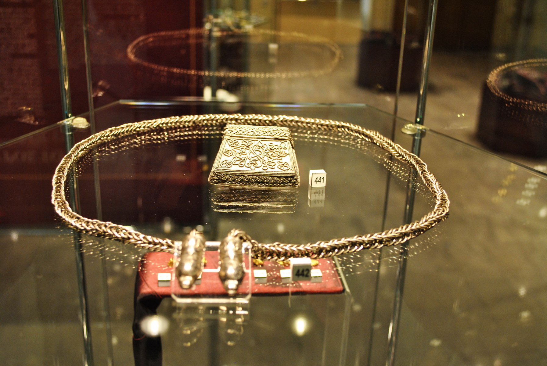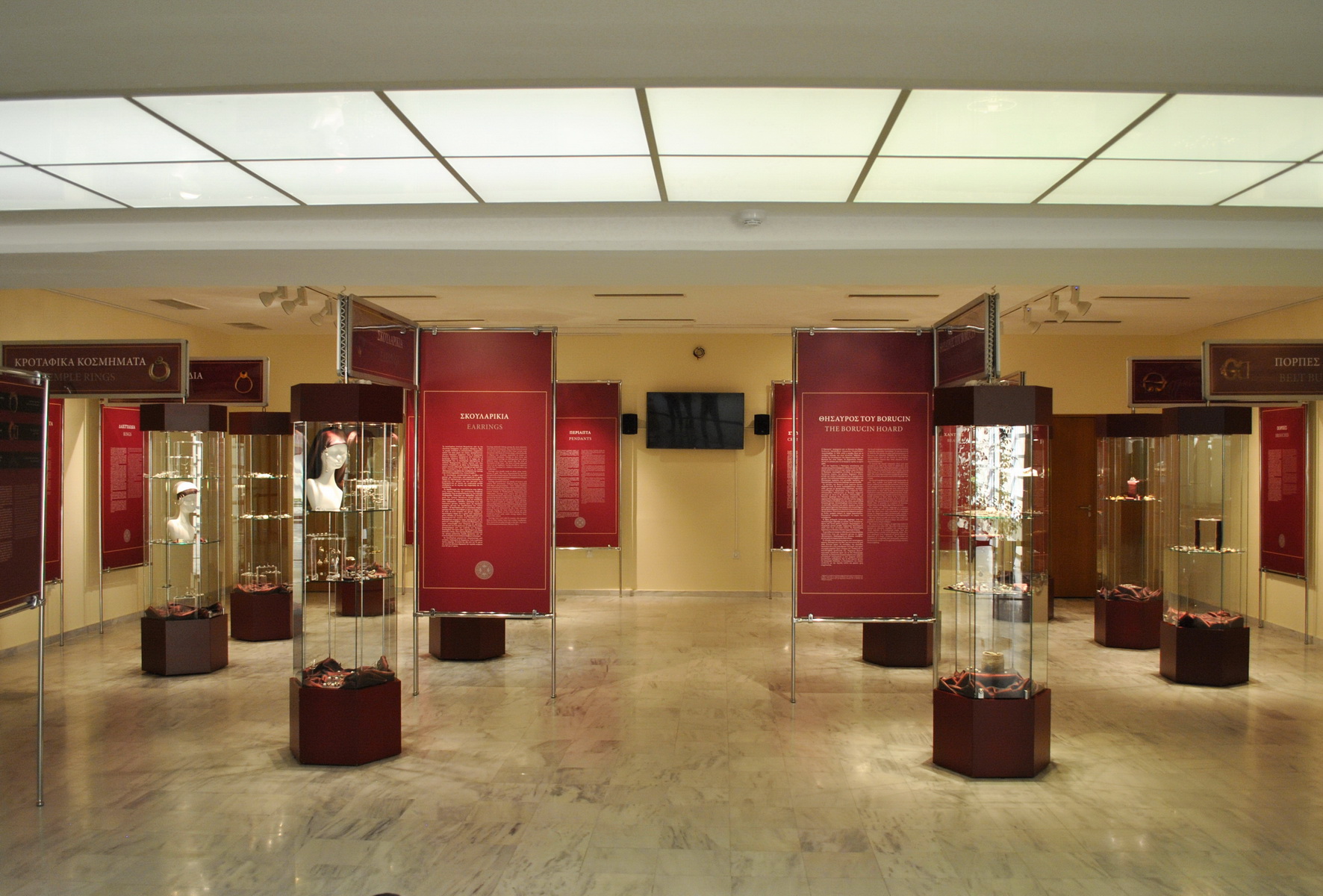 Η παρουσίαση αρθρώνεται σε εννέα θεματικές ενότητες, ανάλογα με το είδος, τη χρήση και την τεχνική κατασκευής και διακόσμησης των αντικειμένων. Ξεχωριστή ενότητα αποτελεί ο περίφημος «Θησαυρός του Borucin», ένα σύνολο πολύτιμων αντικειμένων, που χρονολογούνται στον 11ο αι. και βρέθηκαν στο Borucin της κεντρικής Πολωνίας.