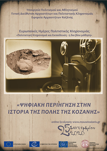 Στο πλαίσιο αυτό, η Εφορεία δημιούργησε και θα προβάλλει την Παρασκευή 25 Σεπτεμβρίου 2020, στο siteτου Αρχαιολογικού Μουσείου Αιανής (https://www.mouseioaianis.gr/), μαγνητοσκοπημένη online ξενάγηση με τίτλο «Ψηφιακή περιήγηση στην ιστορία της πόλης της Κοζάνης».