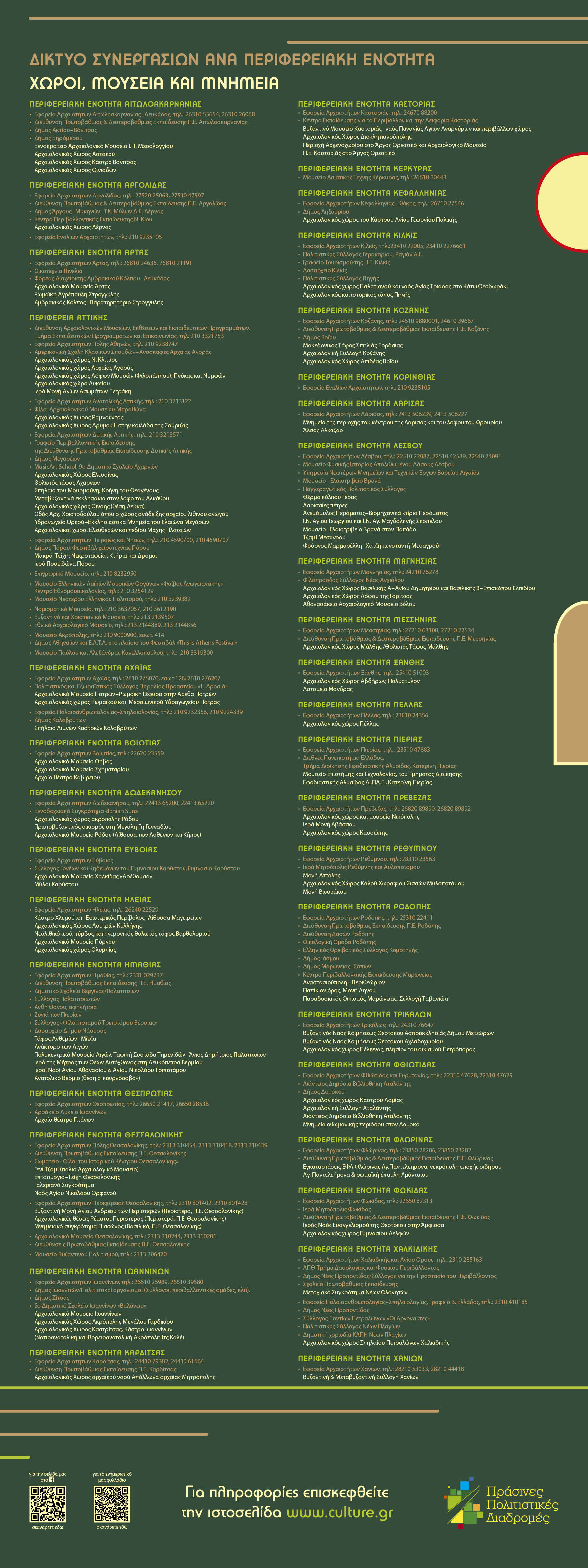Στο φετινό εορτασμό συμμετέχουν 49 Περιφερειακές και Ειδικές Περιφερειακές Υπηρεσίες της Γενικής Διεύθυνσης Αρχαιοτήτων και Πολιτιστικής Κληρονομιάς από 36 Περιφερειακές Ενότητες της Επικράτειας σε συνεργασία με 20 Δήμους, 21 Διευθύνσεις Πρωτοβάθμιας και Δευτεροβάθμιας Εκπαίδευσης του ΥΠΑΙΘΑ, καθώς και πολλά μη δημόσια μουσεία, Ιερές Μητροπόλεις, Κέντρα Περιβαλλοντικής Εκπαίδευσης, Πανεπιστημιακές Σχολές, σχολεία, πολιτιστικούς συλλόγους, περιβαλλοντικές οργανώσεις, σωματεία και συνεταιρισμούς πολιτών, αλλά και με πολλούς εθελοντές.