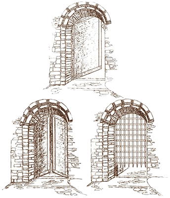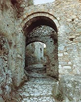 Η ελεύθερη διέλευση των διαβατών μέσα από ιδιωτικούς χώρους εξασφαλίζεται με τη δημιουργία των «διαβατικών», θολοσκέπαστων δηλαδή κοινόχρηστων χώρων, στο ισόγειο των οικιών. Την κίνηση διευκολύνουν και οι «φαλτσογωνίες», αποτμημένες γωνίες στα κατώτερα τμήματα των σπιτιών, που διαπλατύνουν κατά τόπους το δρόμο. |